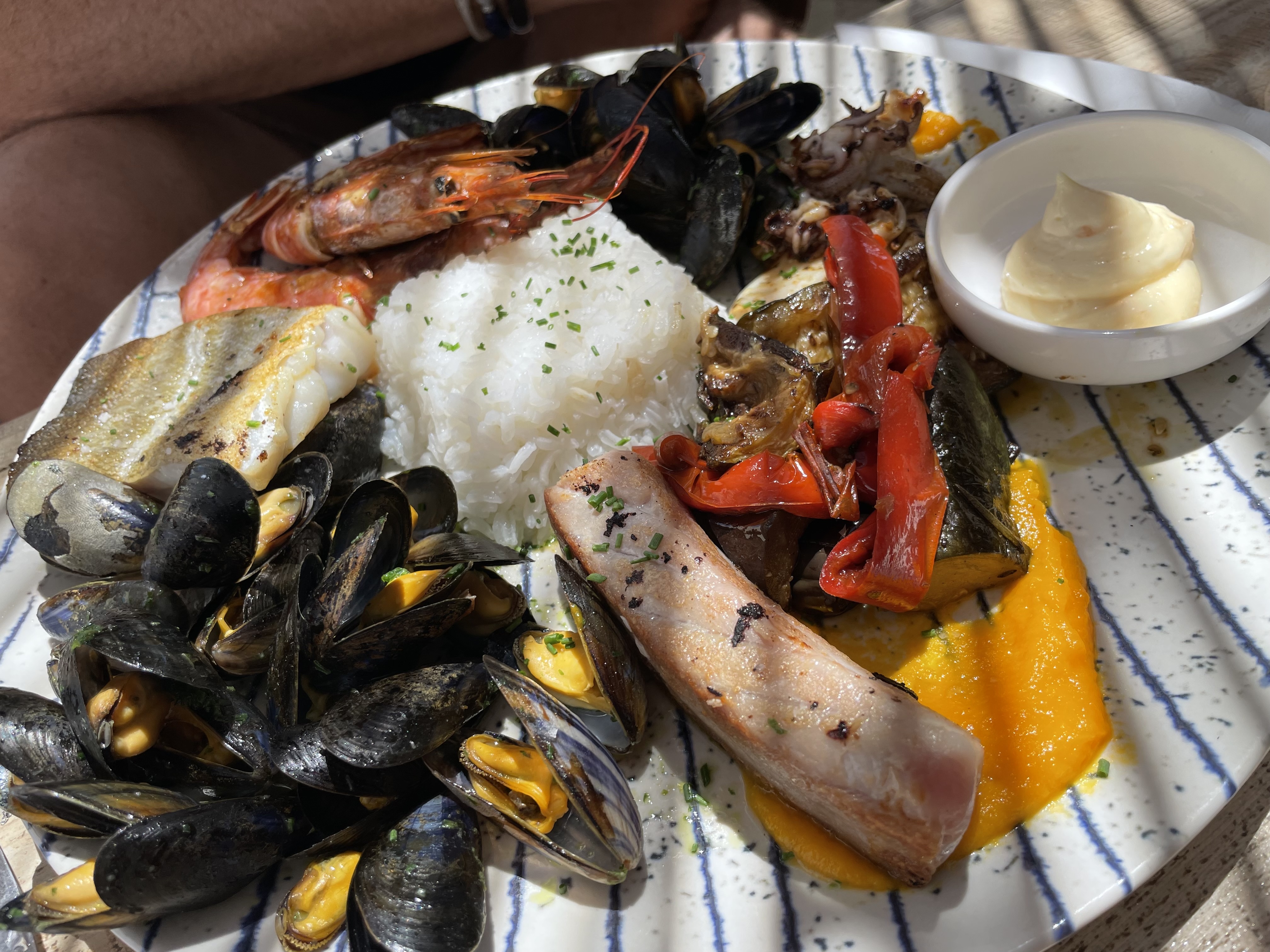 Le top de la qualité loup pêché la veille en méditerranée....petits légumes à la plancha....vin de la région une merveille Le tout dans un cadre exceptionnel...bravo....RIRI....