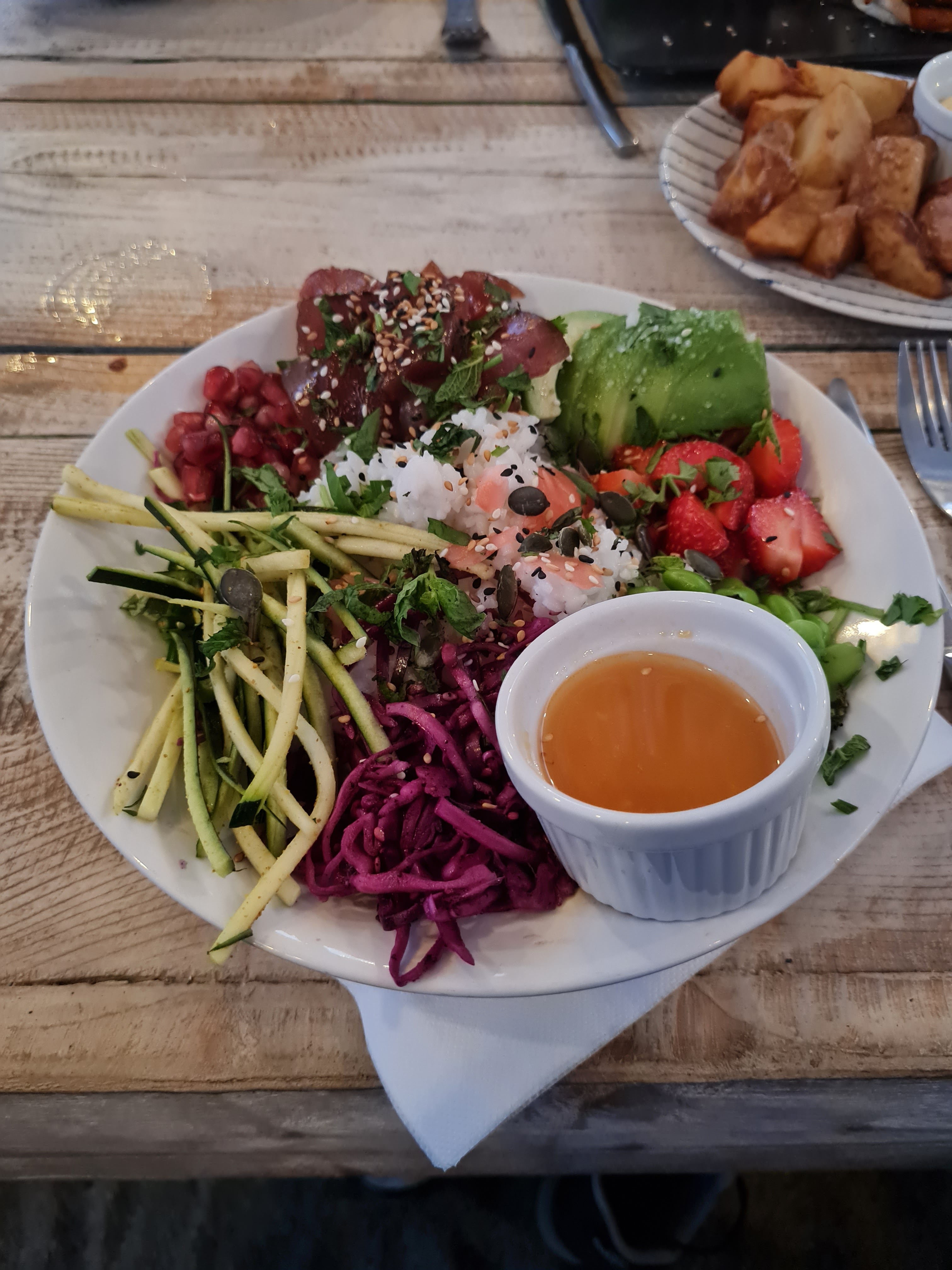 Lieu particulièrement agréable, les plats proposés sont frais et bons. Nous avons été très bien accueillis 👍👍