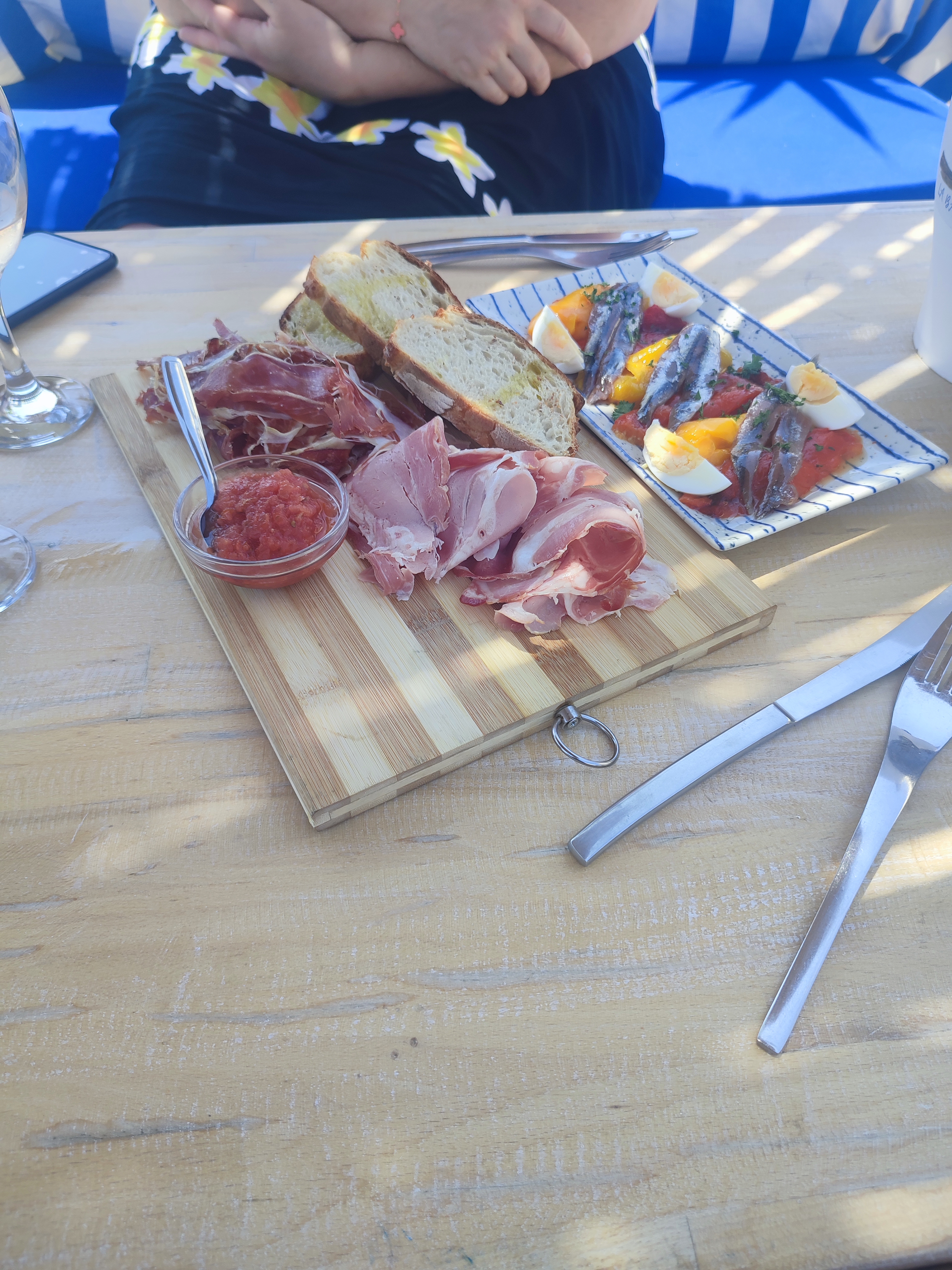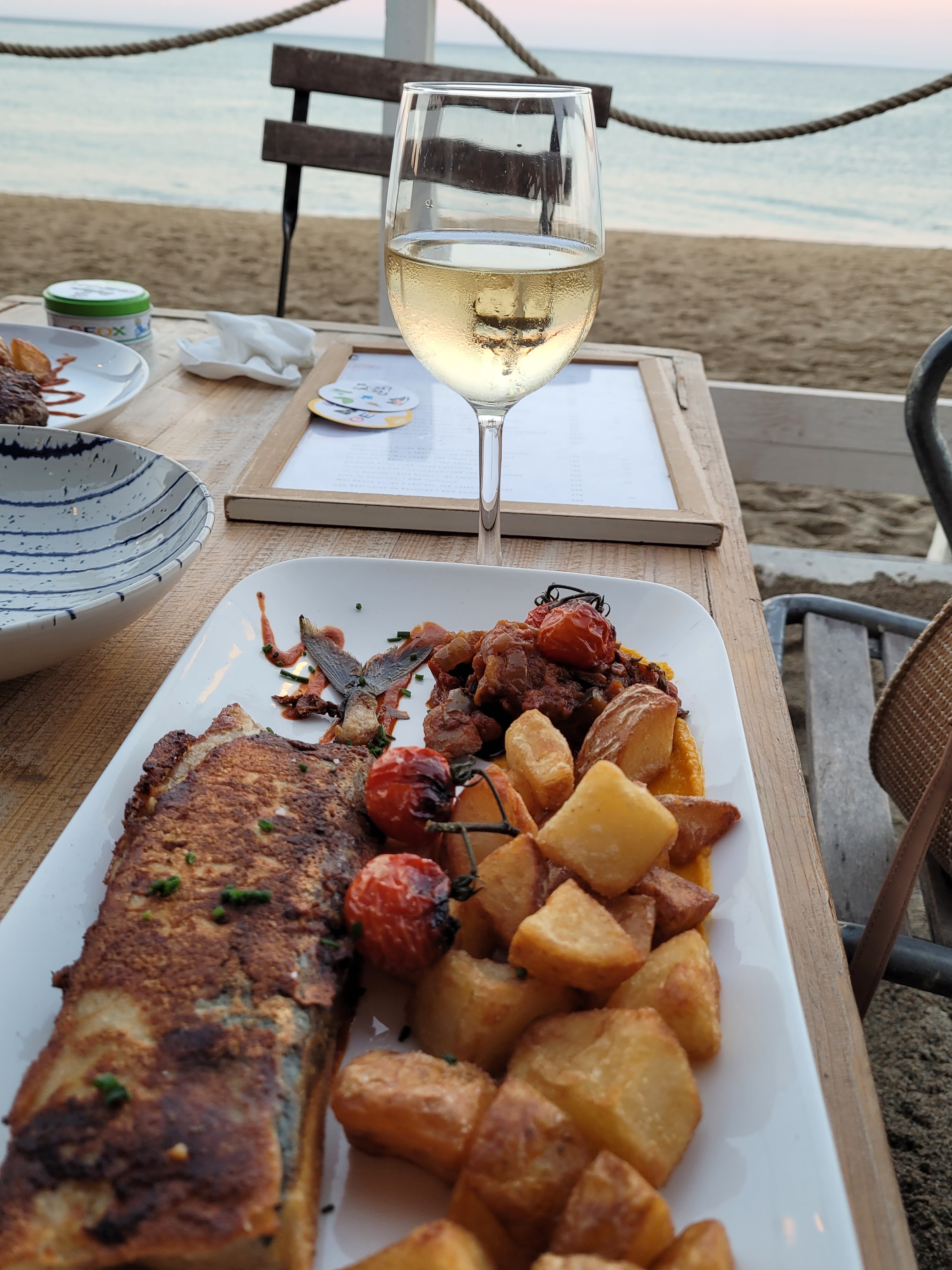 Restaurant de plage... quantité restreinte dans les assiettes, assiette de tapas pour 20 eu avec un seul choix de charcuterie et trois tartines de pan con tomate , des restaurants à l'intérieur des terres proposent pour le même prix 5 charcuteries, viande commandée à point servit trop cuite, pas de vin en pichet juste en bouteille à 18 eu la moins chère... On paye juste pour le cadre face à la mer et certainement pas pour le repas servit. À éviter