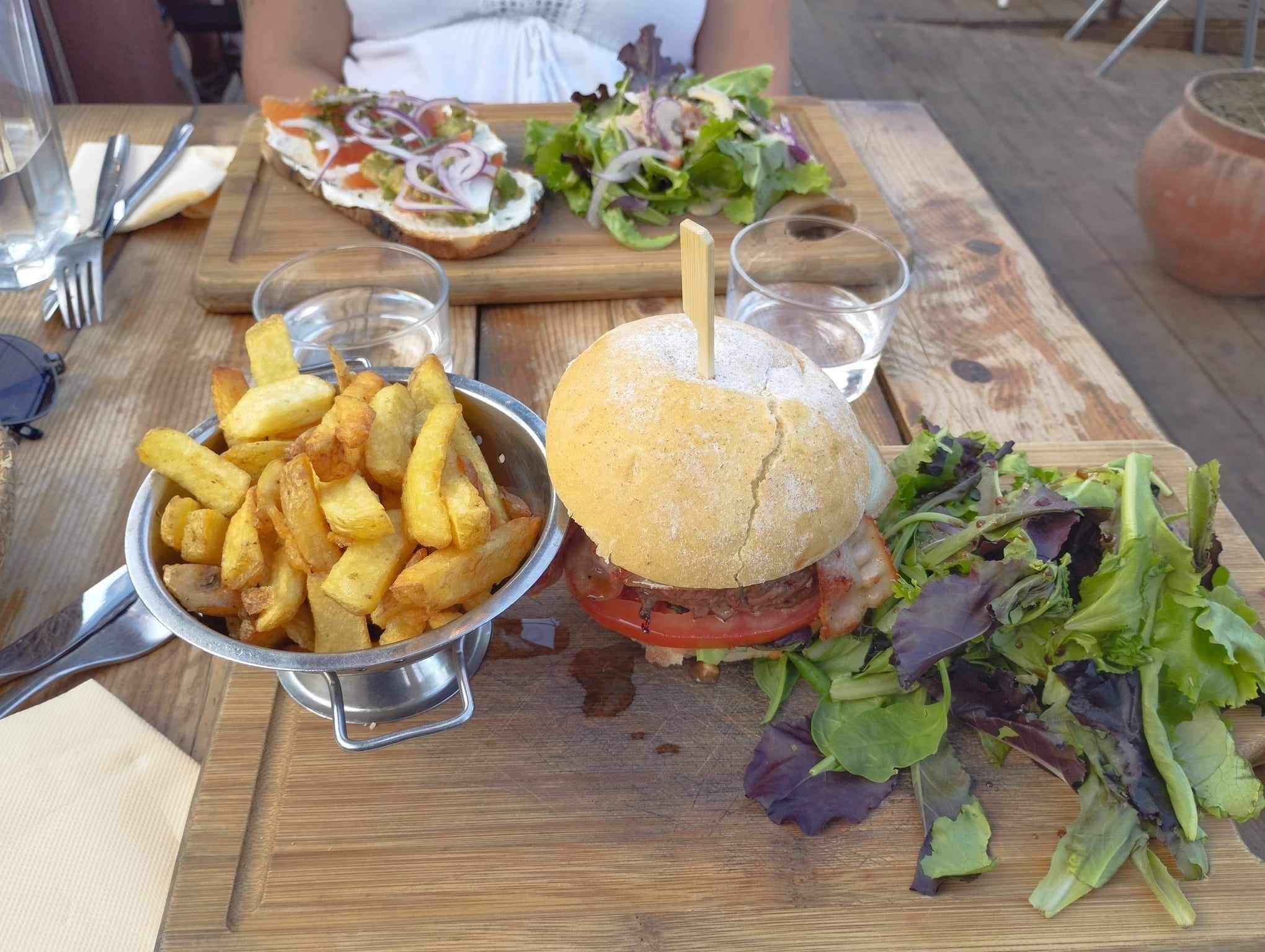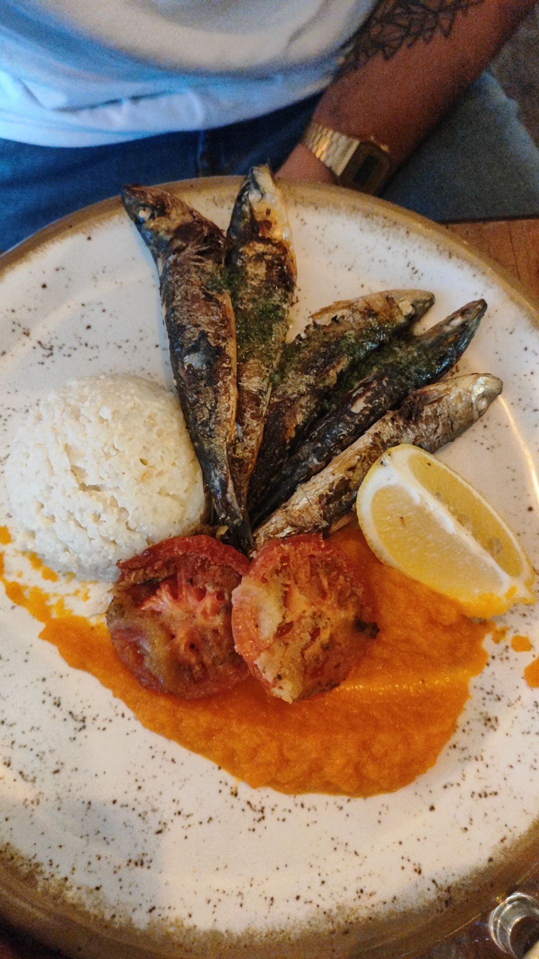 Nous sommes arrivés un peu tard malheureusement les cusines allaient fermées mais ils ont bien voulu nous servir un plat et eventuellement un dessert. Un hamburger tres savoureux et fin, pas bouratif du tout. Des frites (je penses) maison excellentes. Des sardines grillées en quantité suffisante qui avaient l air fraiches et etait tres bonnes. La sangria un peu sucré mais tres tres bonne aussi! Ca aurait été trop bien d avoir une petite mayo maison avec tout ca, vous devriez y penser... Ca ajouterait encore plus de valeur à votre cuisine qui est deja tres bonne! Le cadre est sympathique et en plus au bord de la mer! La serveuse super sympa et souriante meme en fin de service. J essaye de convaincre mon conjoint d y retourner ce soir 😋