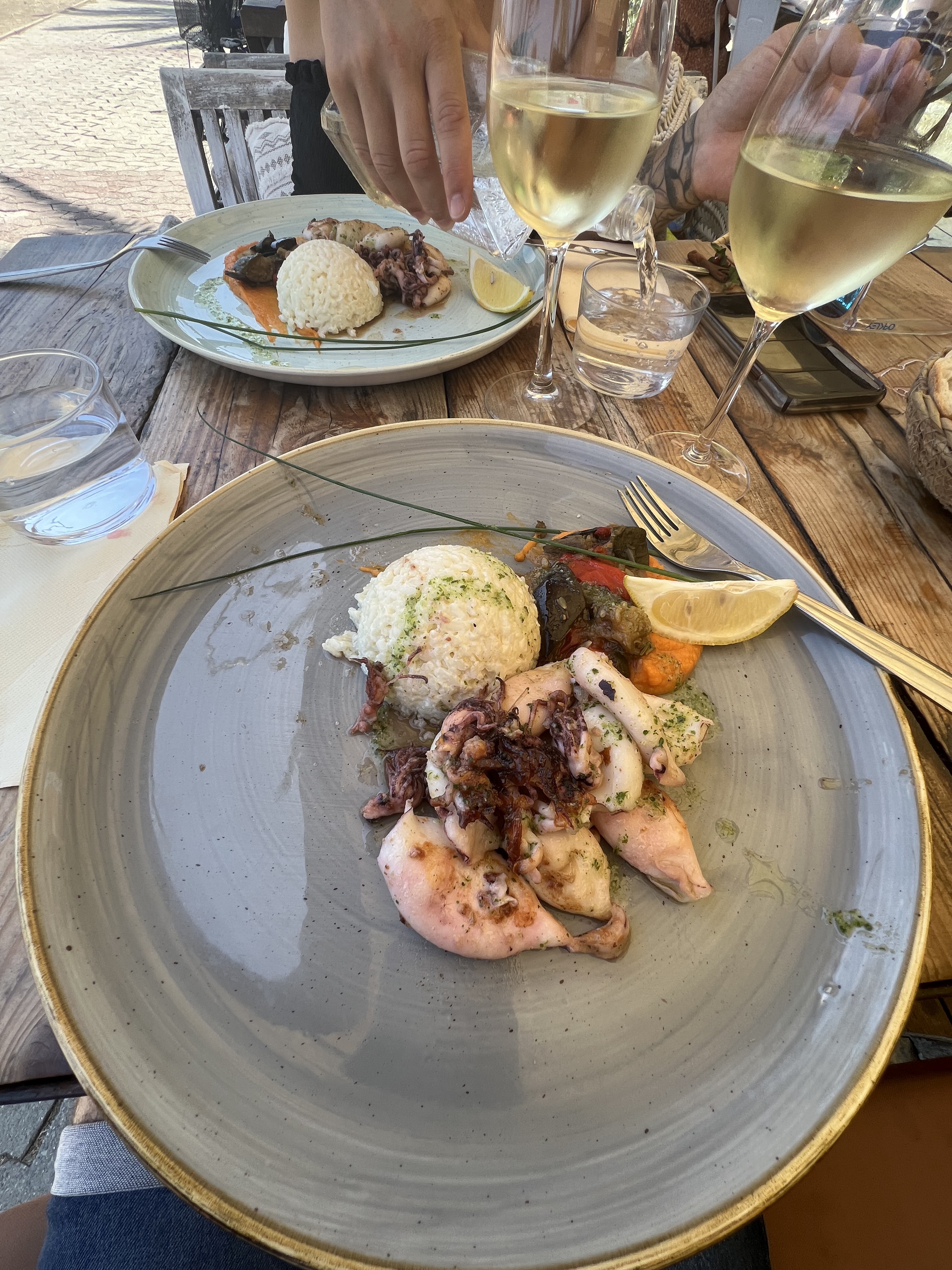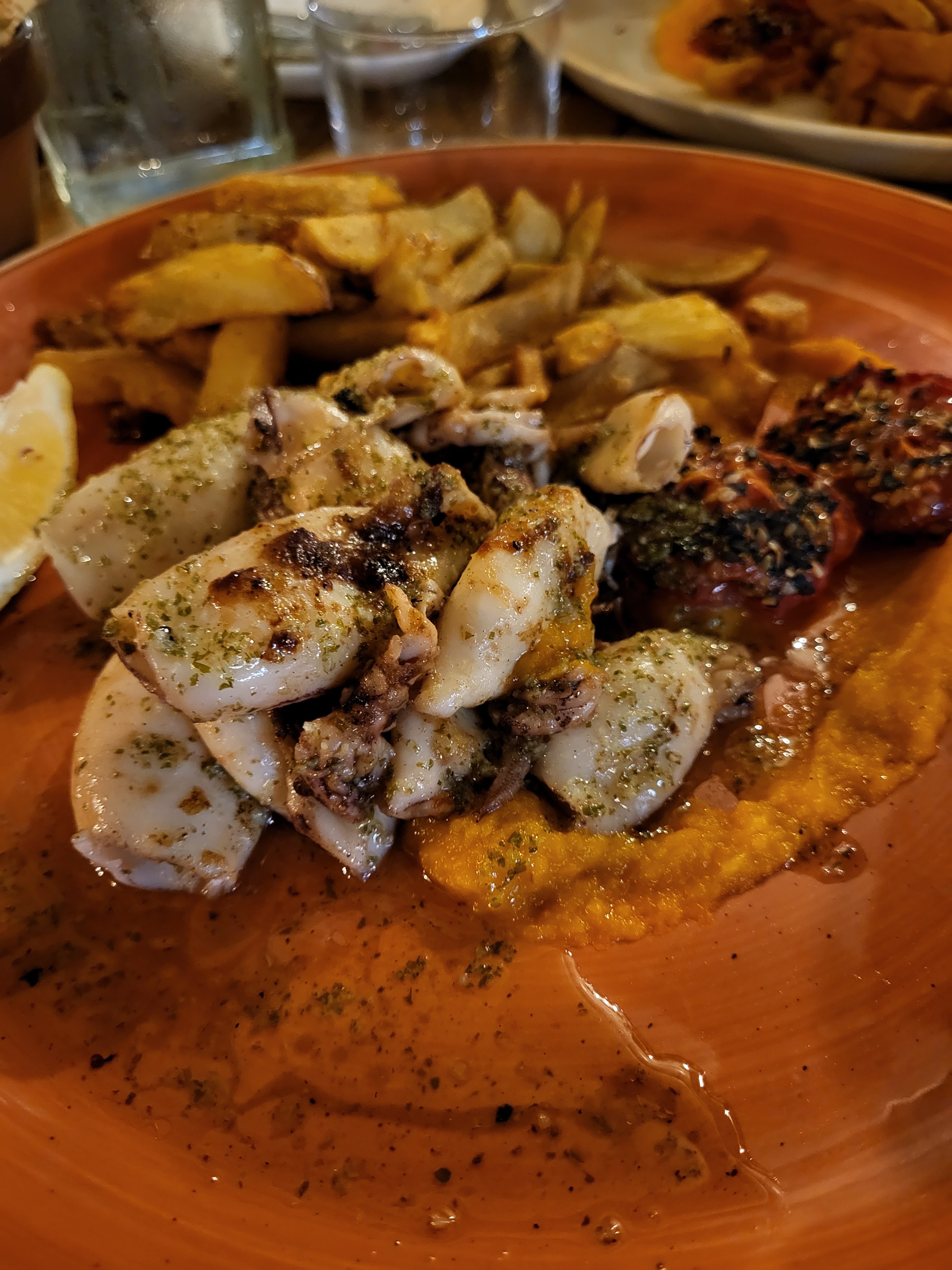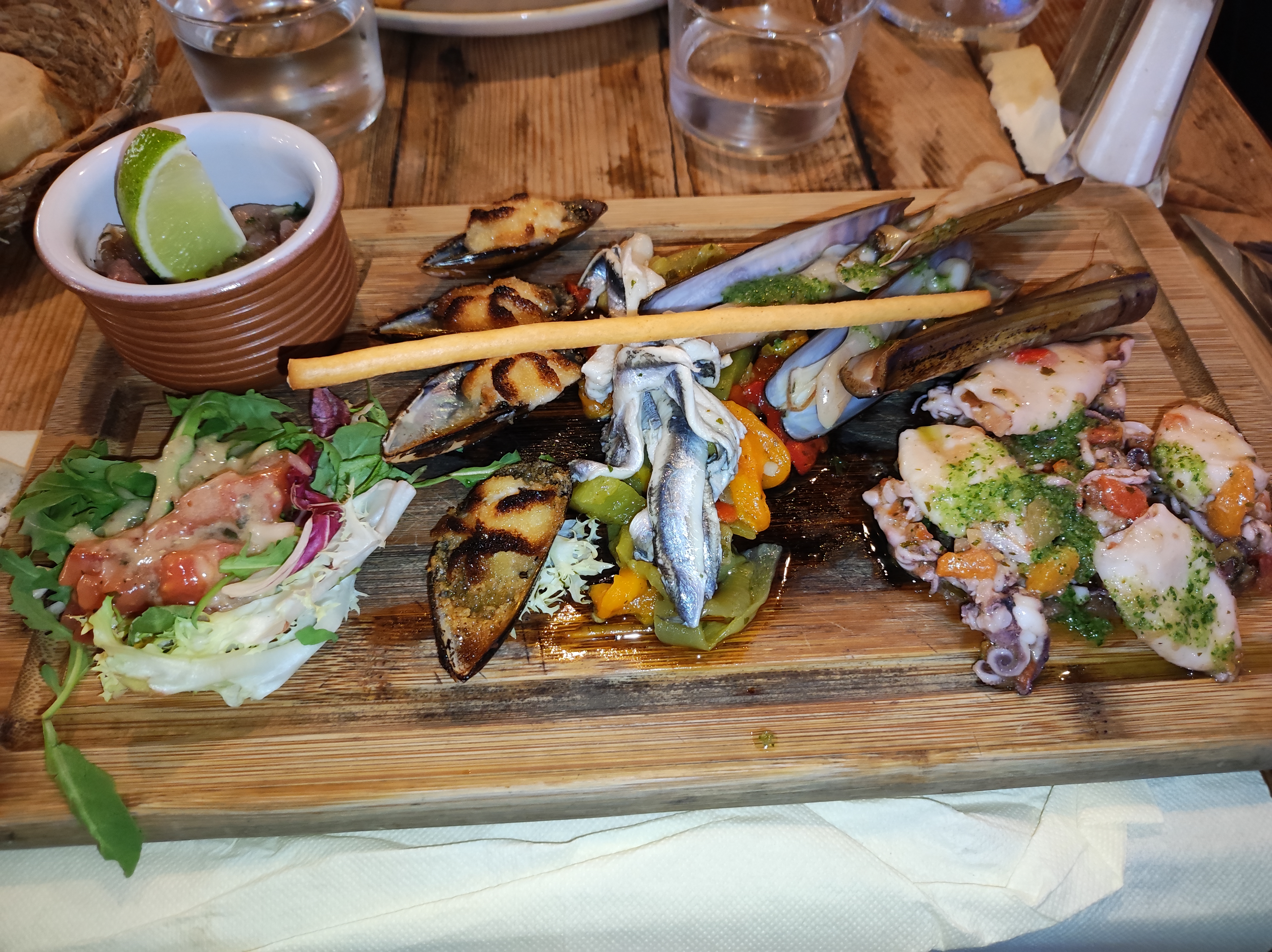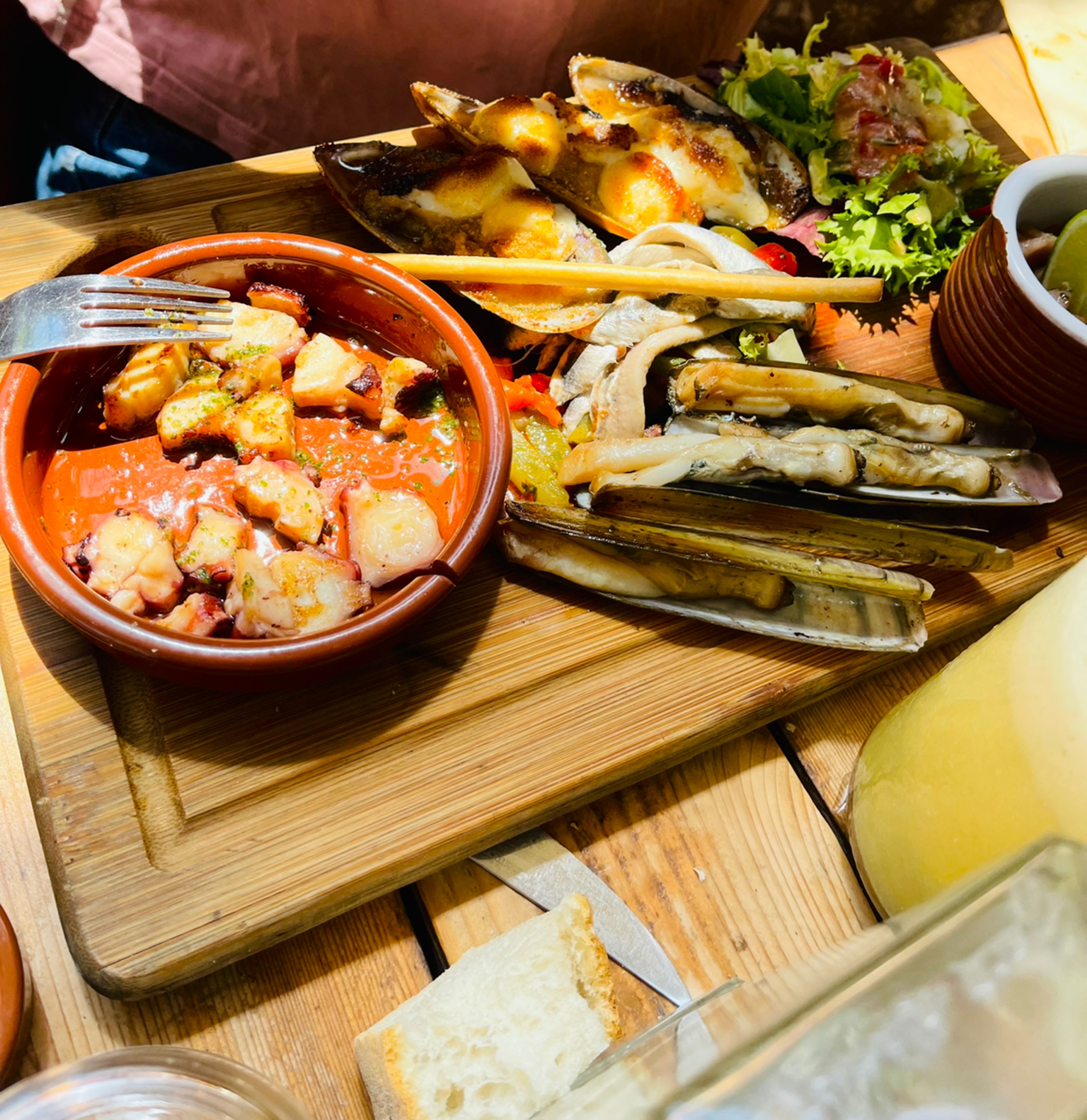 Après avoir patienté 20 minutes nous avons mangé. Tapas de la mer excellente puis calamar persillade bien cuits mais trop salés et moule pour ma femme malheureusement aussi bien trop salée. Malgré ça nous avons passé un bon moment et les serveurs sont agréables. Ps: le resto ne prend pas les Tickets restaurants.