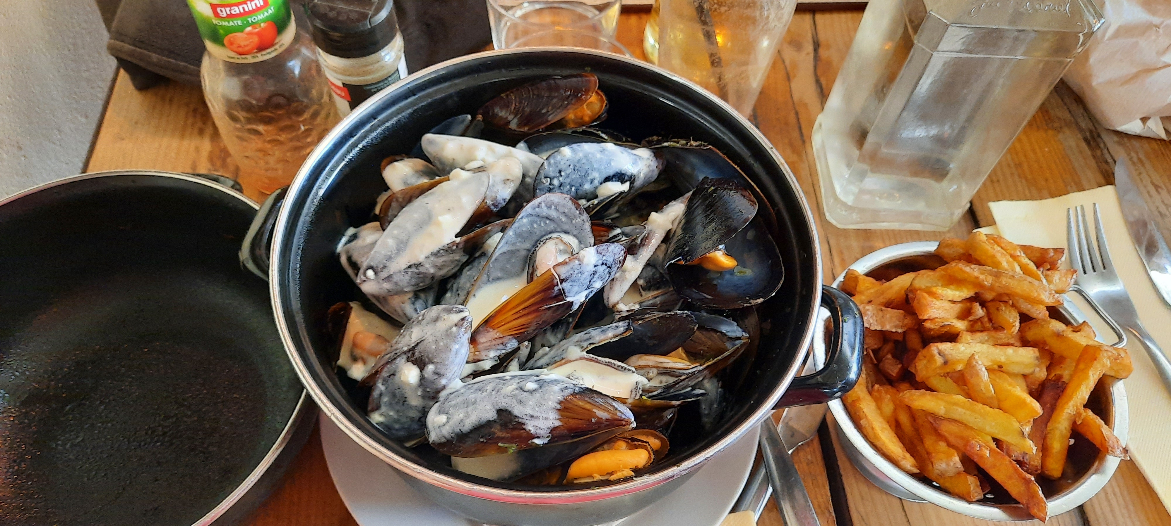 Une belle déception avec des moules marinières sèchent certainement cuites et recuites, une sauce marinière inexistante pas d oignon pas de vin blanc...bref à éviter...bien dommage bel emplacement.