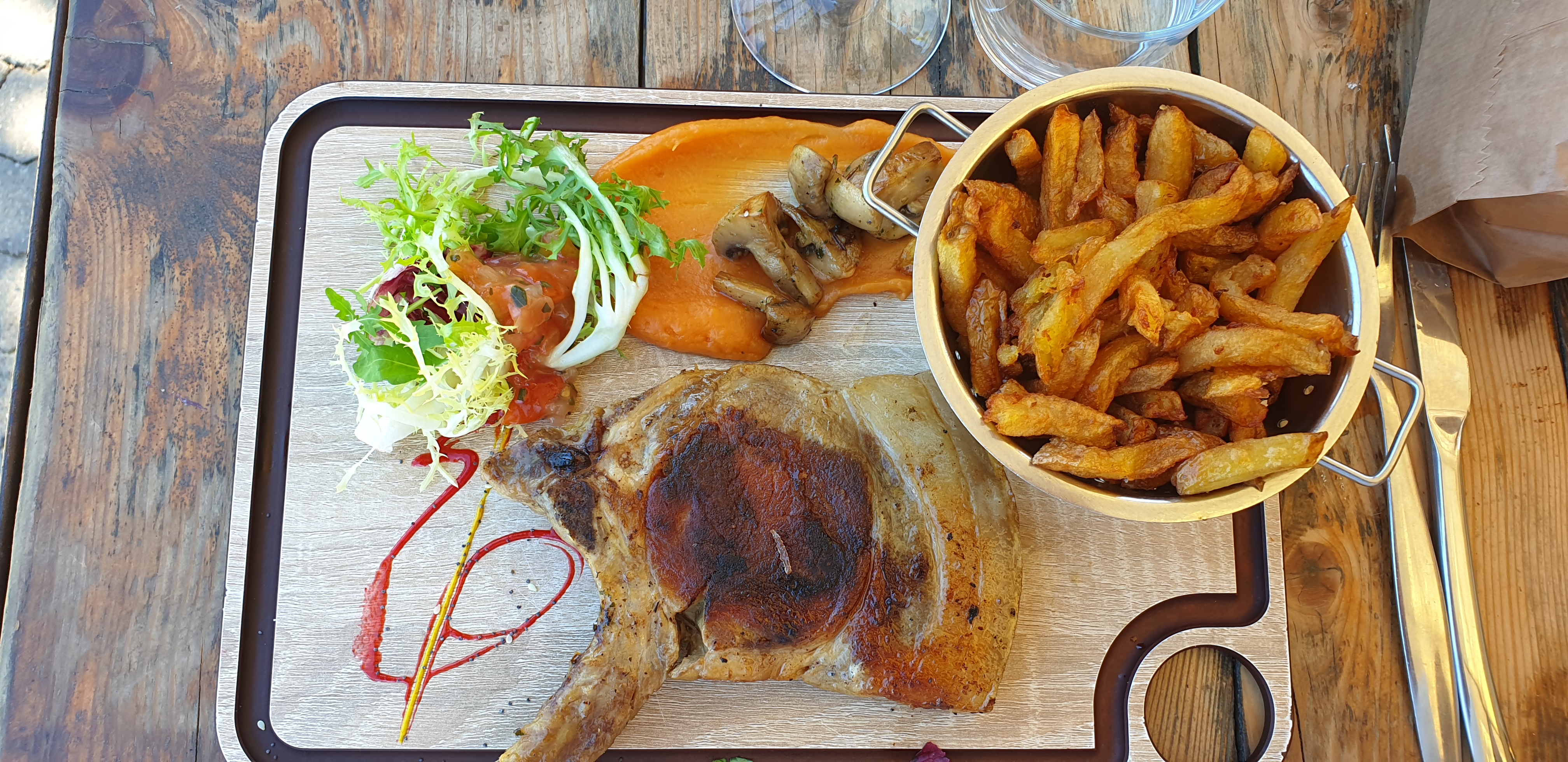 Très bon restaurant, service rapide , personnel agréable, beau cadre . Frites maison mais peu dans l' assiette.