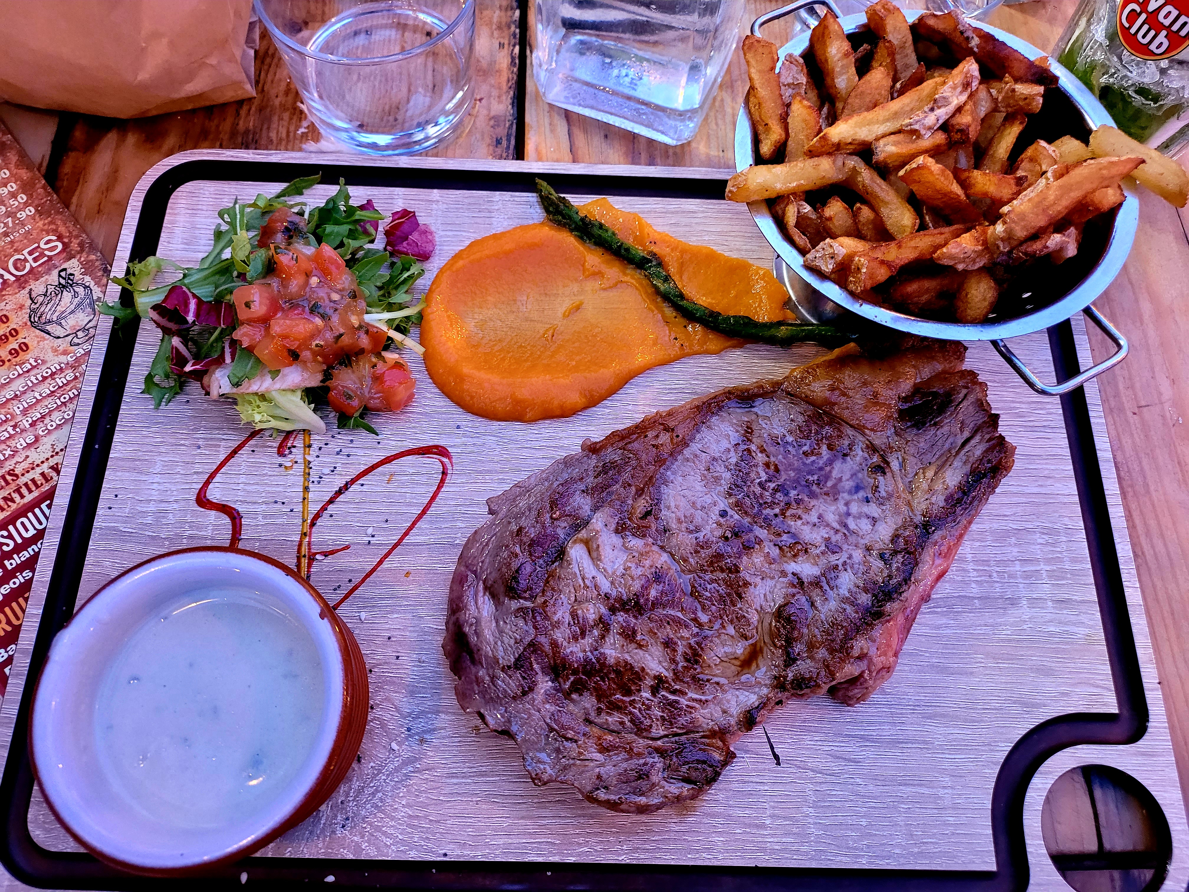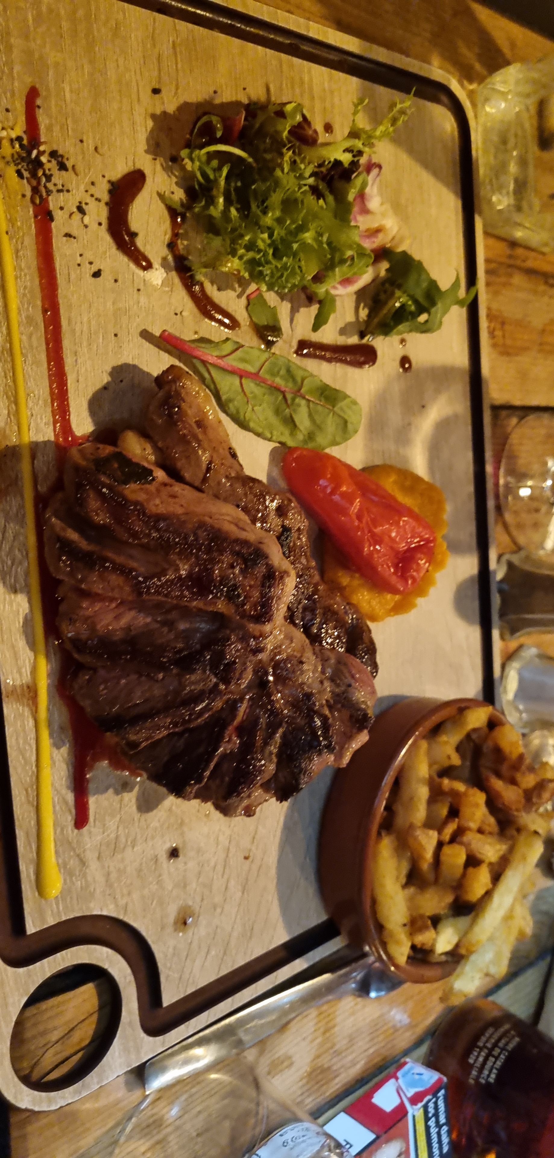 Un menu à 25€ entrées plat Entrée correcte repas (pièces du boucher) c’est pas trop ça cuisson à point je demande on me ramène un truc totalement cuit et la sauce poivre non plus c’est pas du tout ça