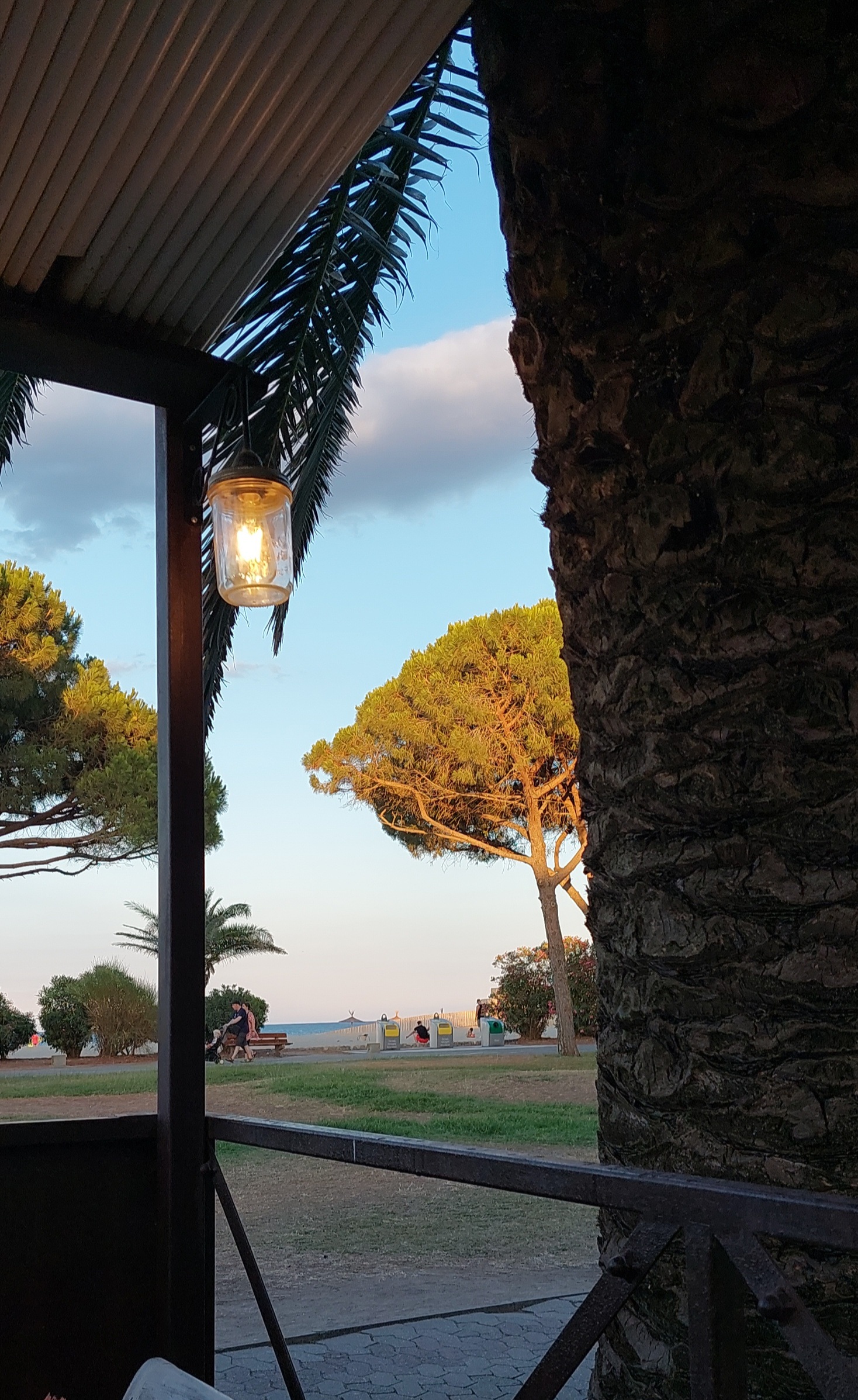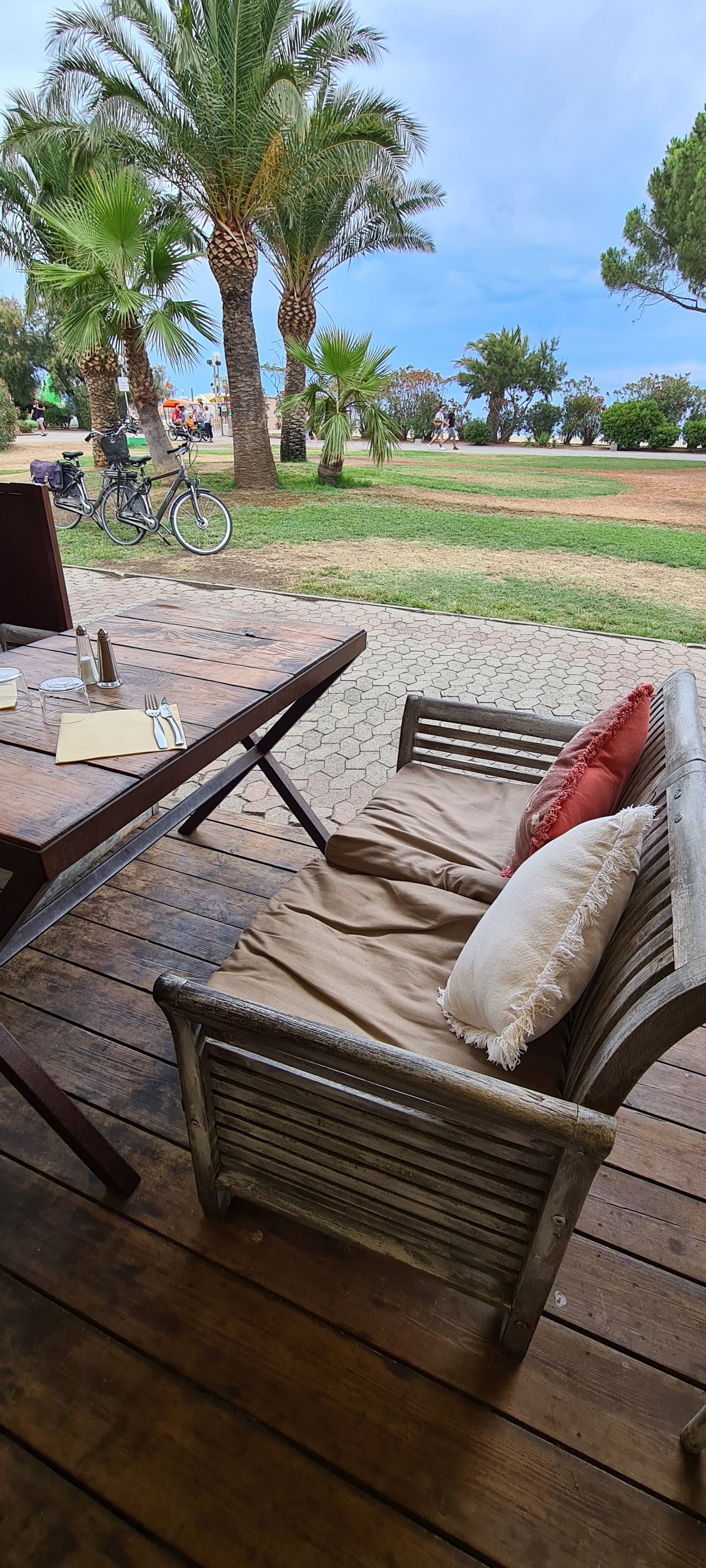 Sympa très bien accueilli, salades copieuses, prix abordables 15 euros 90 la salade catalane, copieuse et bonne avec des anchois au vinaigre donc pas salée outre mesure ! Vue sur mer. Table en 1 ére ligne avec Canapé et coussins très confortable et cosy 🥰 je valide