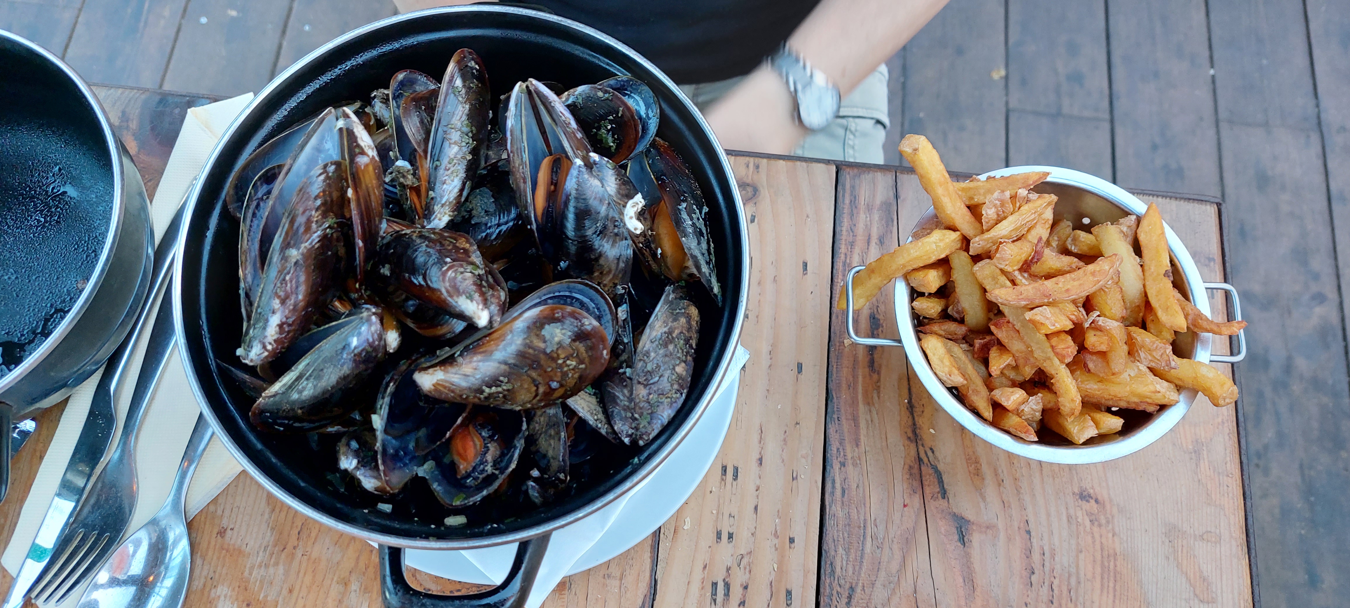 La première fois j'ai pris le plat du jour. Le menu était divinement bon ! J'y suis retournée le soir même pour les moules. De plus le service est rapide et le personnel hyper agréable ! Vu sur la mer en plus... Je recommande vivement à tous ceux qui me suivent !