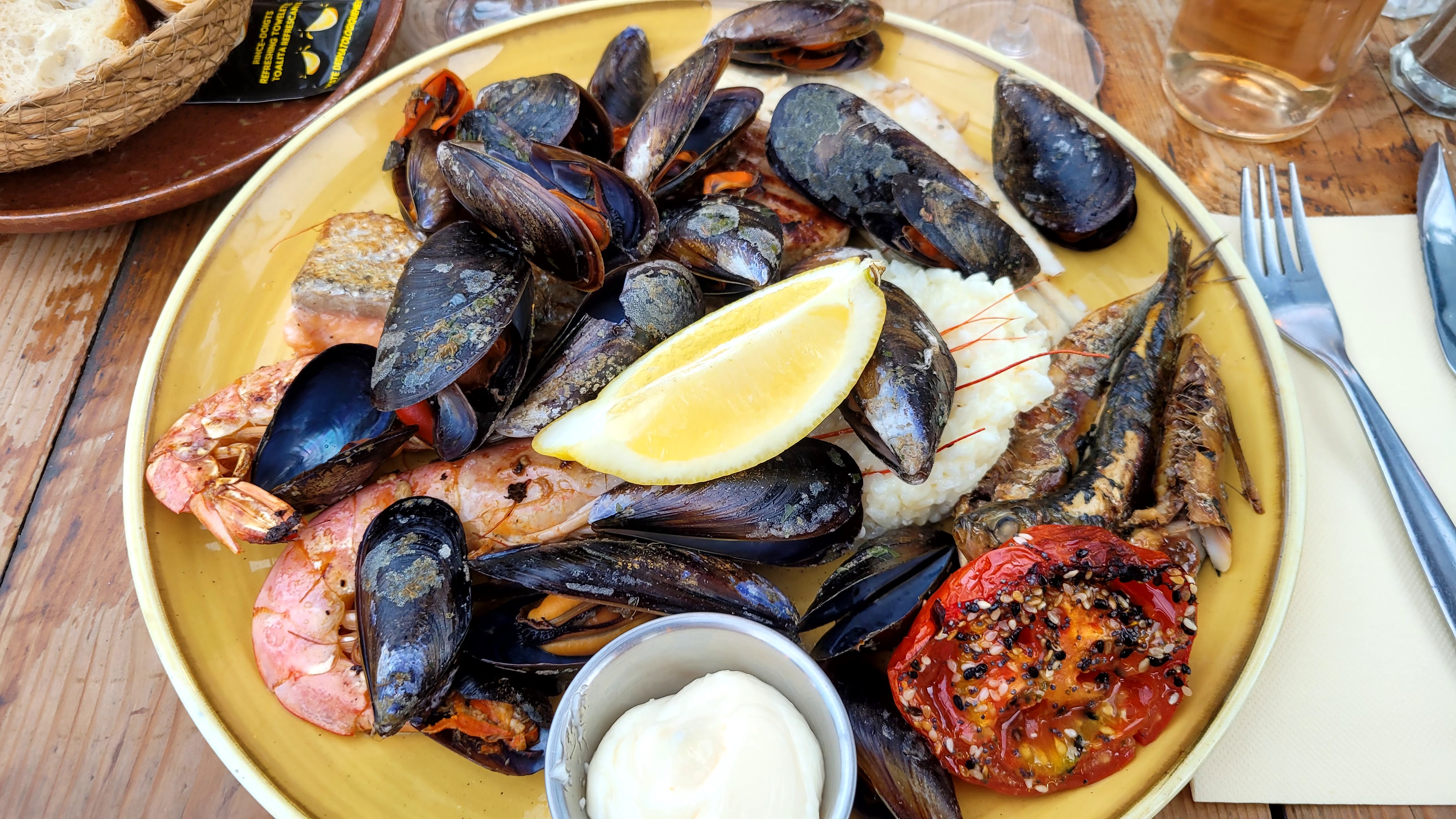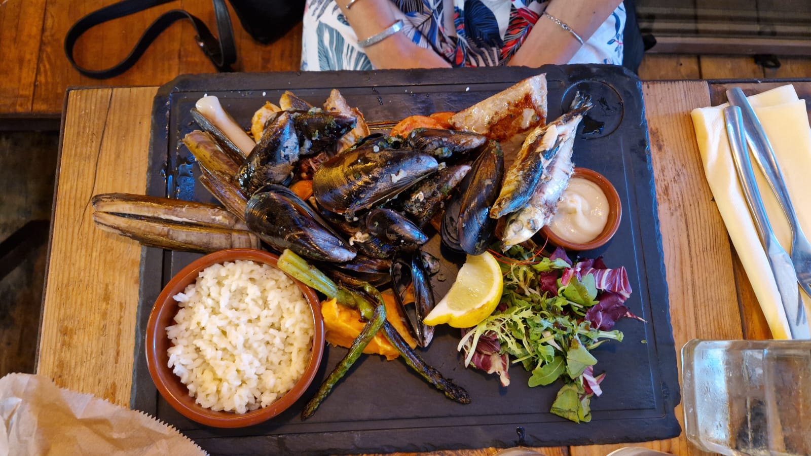 Nous avons pris 2 parilladas. Saumon et thon trop cuit , moules desséchées , gambas surgelées, riz gluant, ailloli en pot et de piètre qualité et le comble ,les sardines pas fraiches, du coup , malade la nuit....2 étoiles pour le serveur très sympathique......autrement une seule