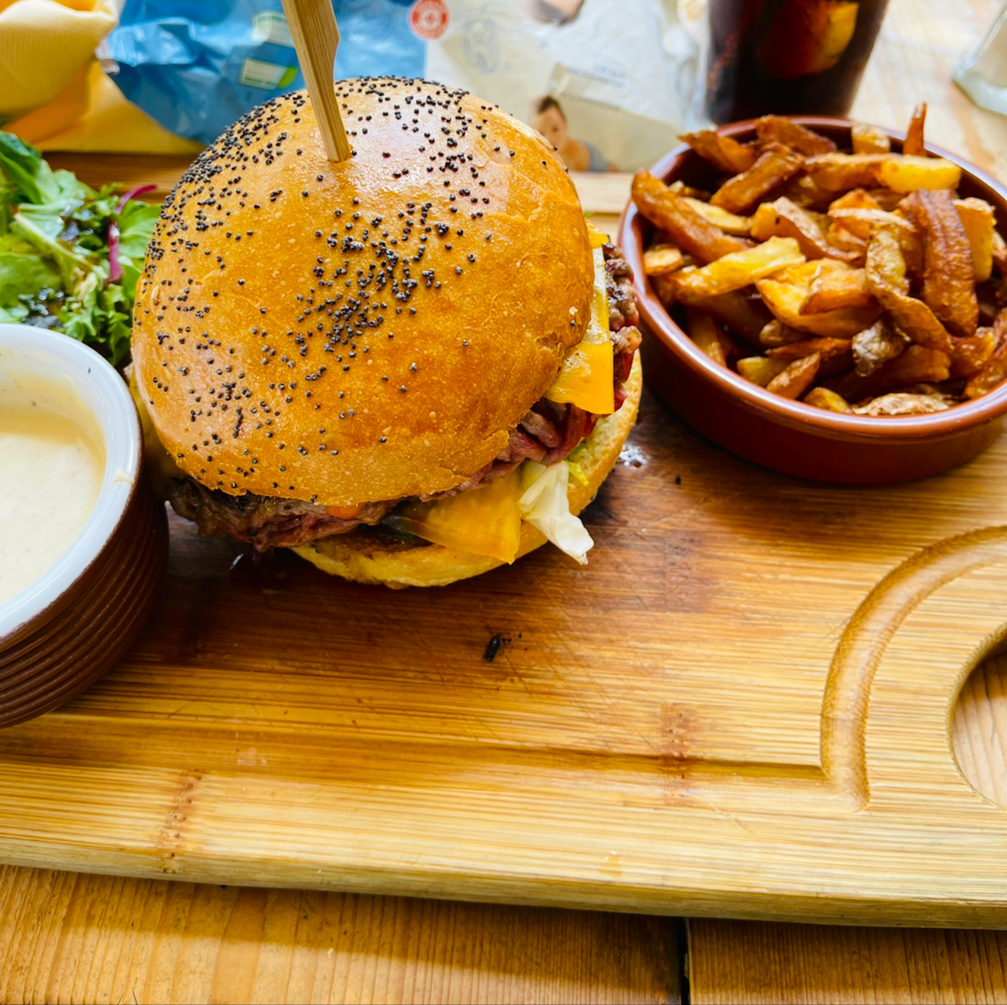 Un endroit simple mais agréable. Une cuisine bonne et copieuse. Des burgers vraiment très bons et des frites fraîches. 🍟. Certainement une des meilleures adresses du coin surtout pour une zone aussi touristique . Foncez vous régalez