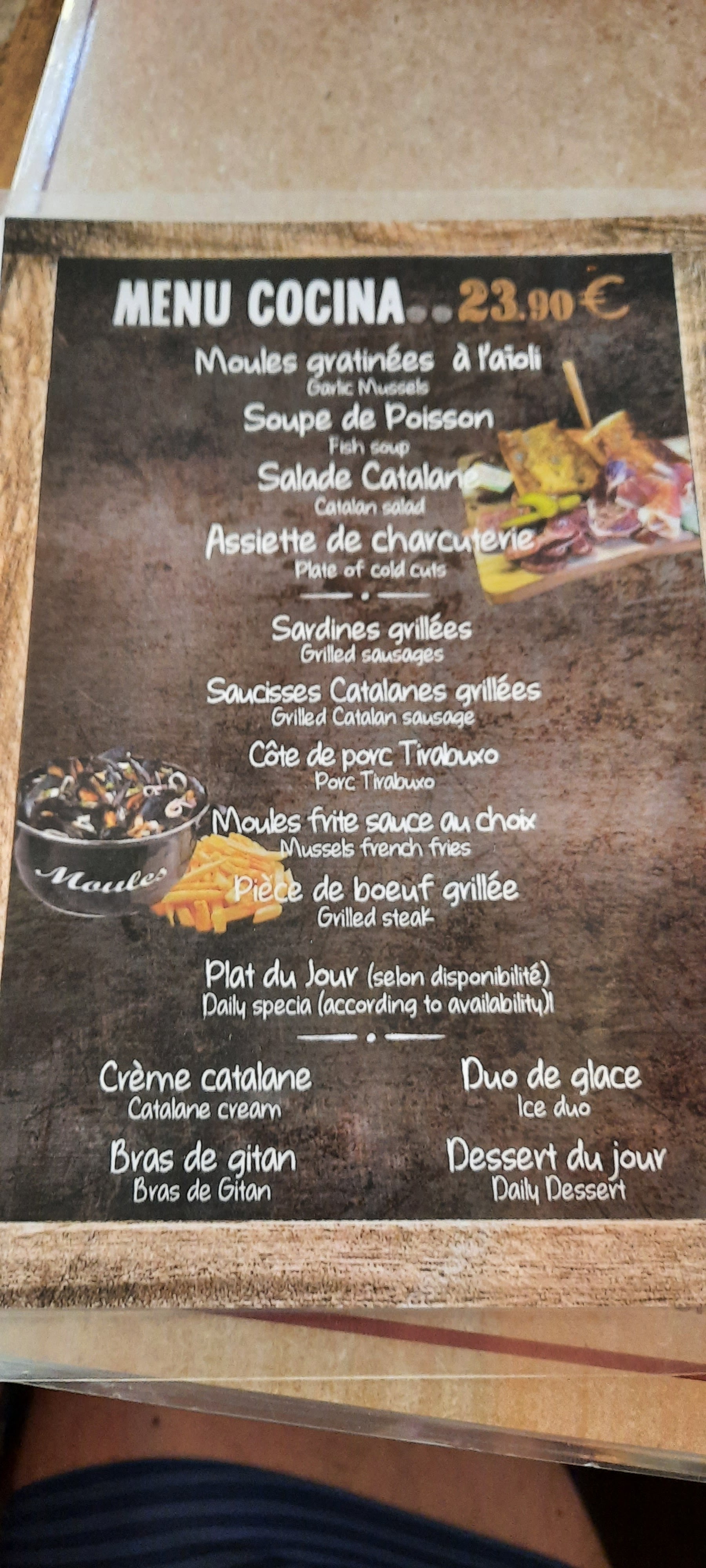 Je recommande ce petit restaurant très bien situé en bord de plage à Argeles. Cadre très sympathique et conviviale. Personnel accueillant et à l’écoute. Très peu d’attente malgré le monde. Large choix en terme de menu. Plats plutôt bien présentés. Petite assiette de charcuterie sympa, moules très bonnes seul petit bémol les frites pas assez cuites • Mais Si vous cherchez un restaurant avec un rapport qualité prix correct en bord de mer n’hésitez pas !! Je recommande La Cocina
