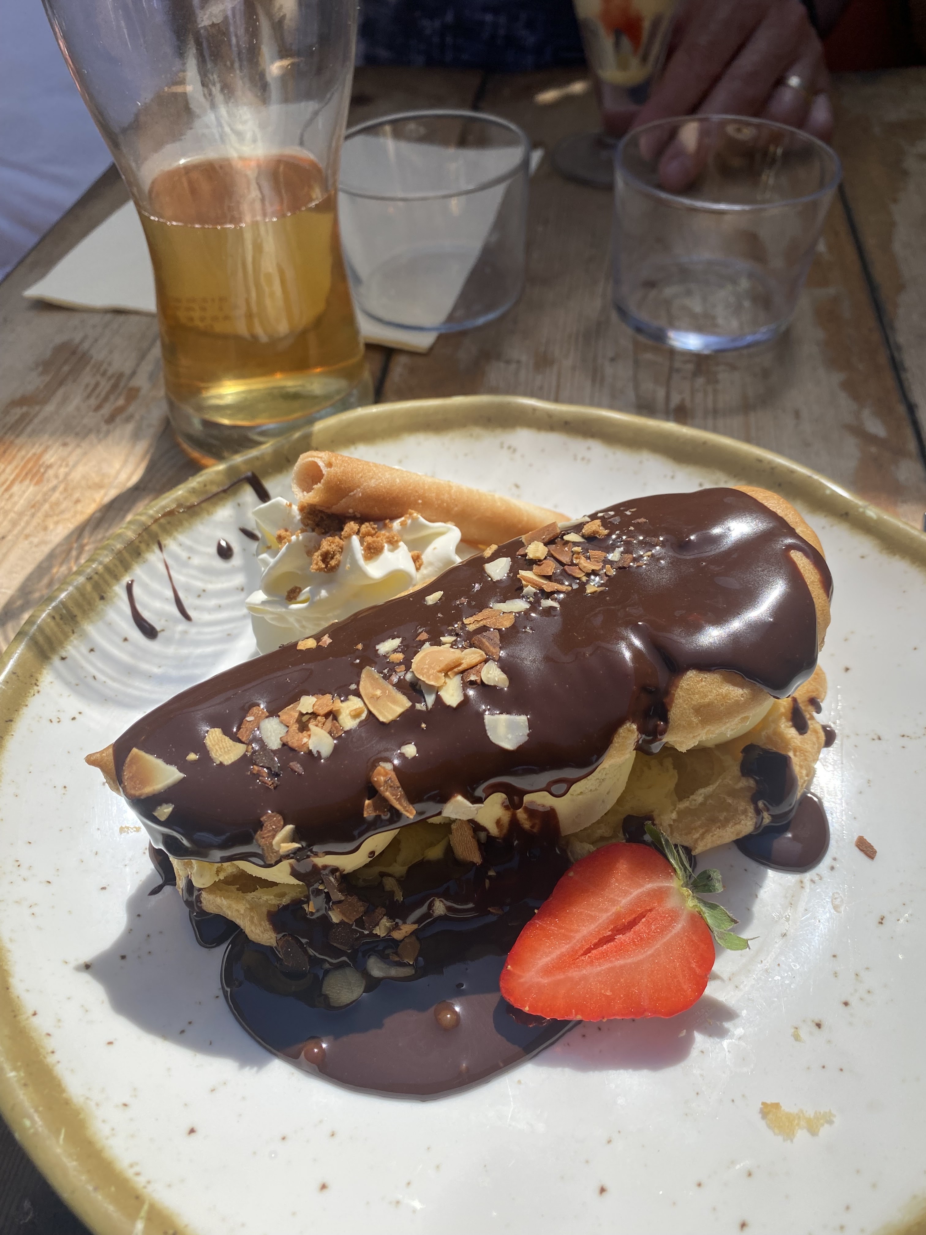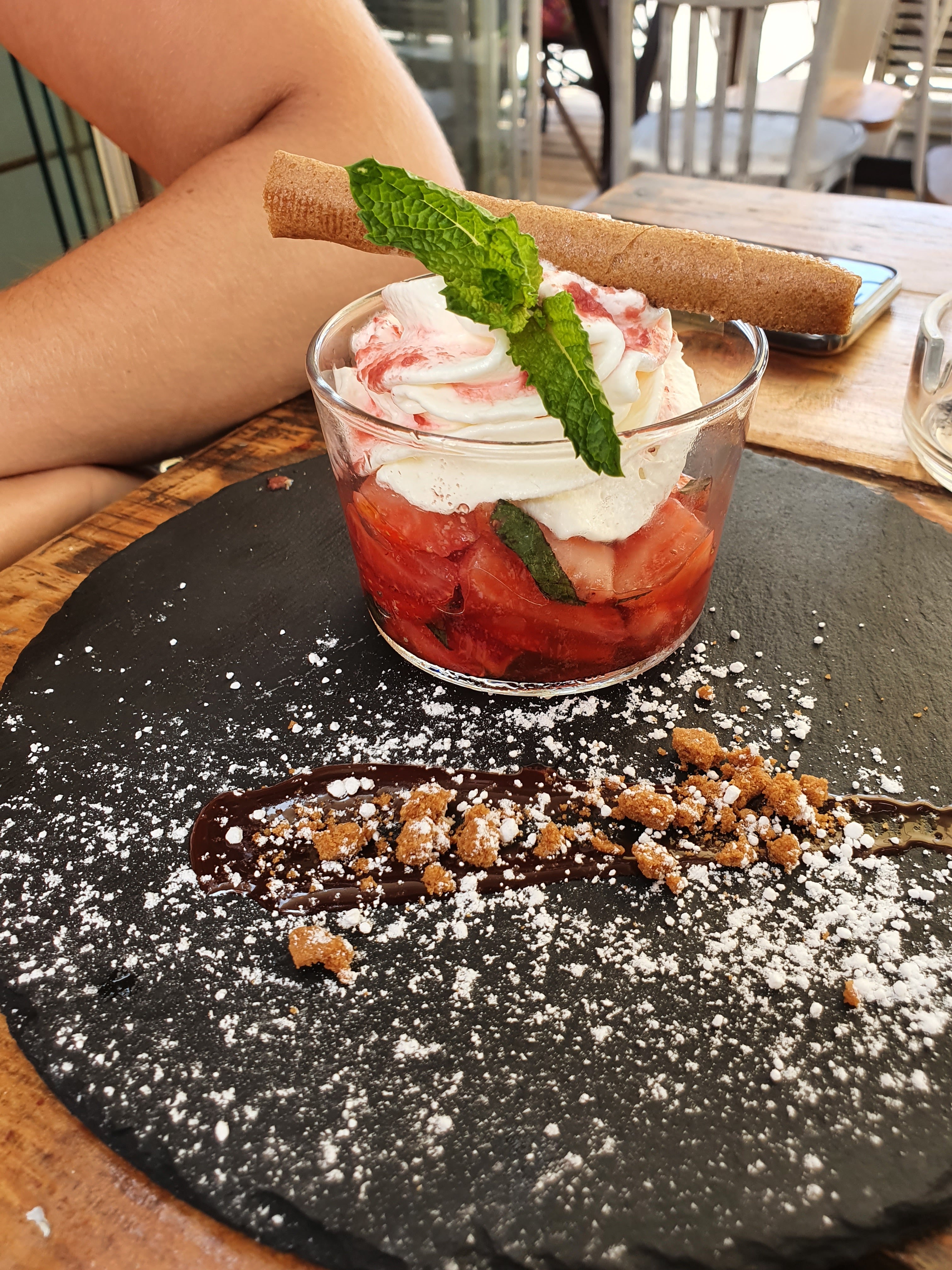 Un peu septique au départ car pas beaucoup de plats qui me plaisait, Serveur agréable service rapide cocktail pas beaucoup de choix les basics, les plats était bon bien présenté frite fraîche ça change des surgelés, nous avons mangez en terrasse face à la mer très belle vu. Les dessert bras de gitans était très bon.