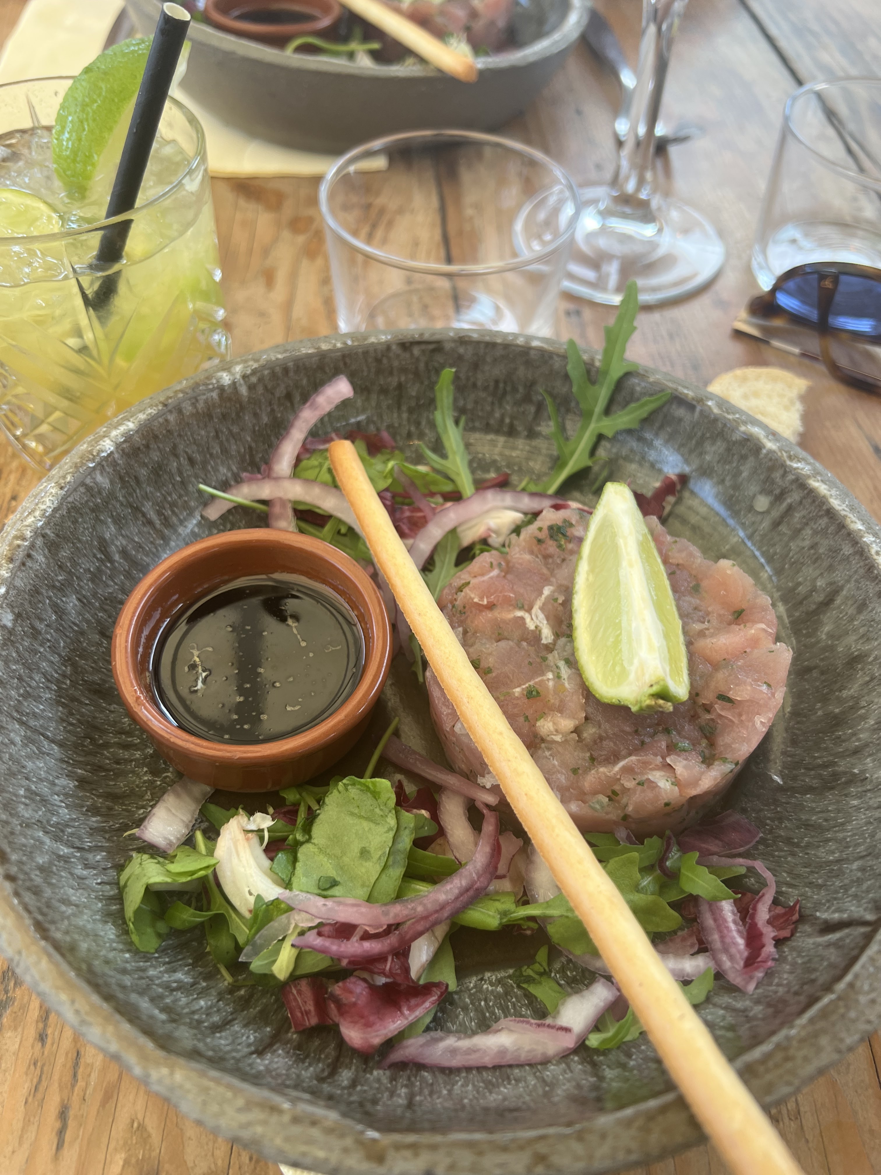 Restaurant très beau avec un personnel très gentil. Nous sommes arrivés tôt en plein juillet et on a eu une place de suite pour 4 (par contre après il y avait un peu d’attente). Assiettes très jolies et surtout très bonnes ! Nous nous sommes tous régalés ! + Sangria blanche superbe !