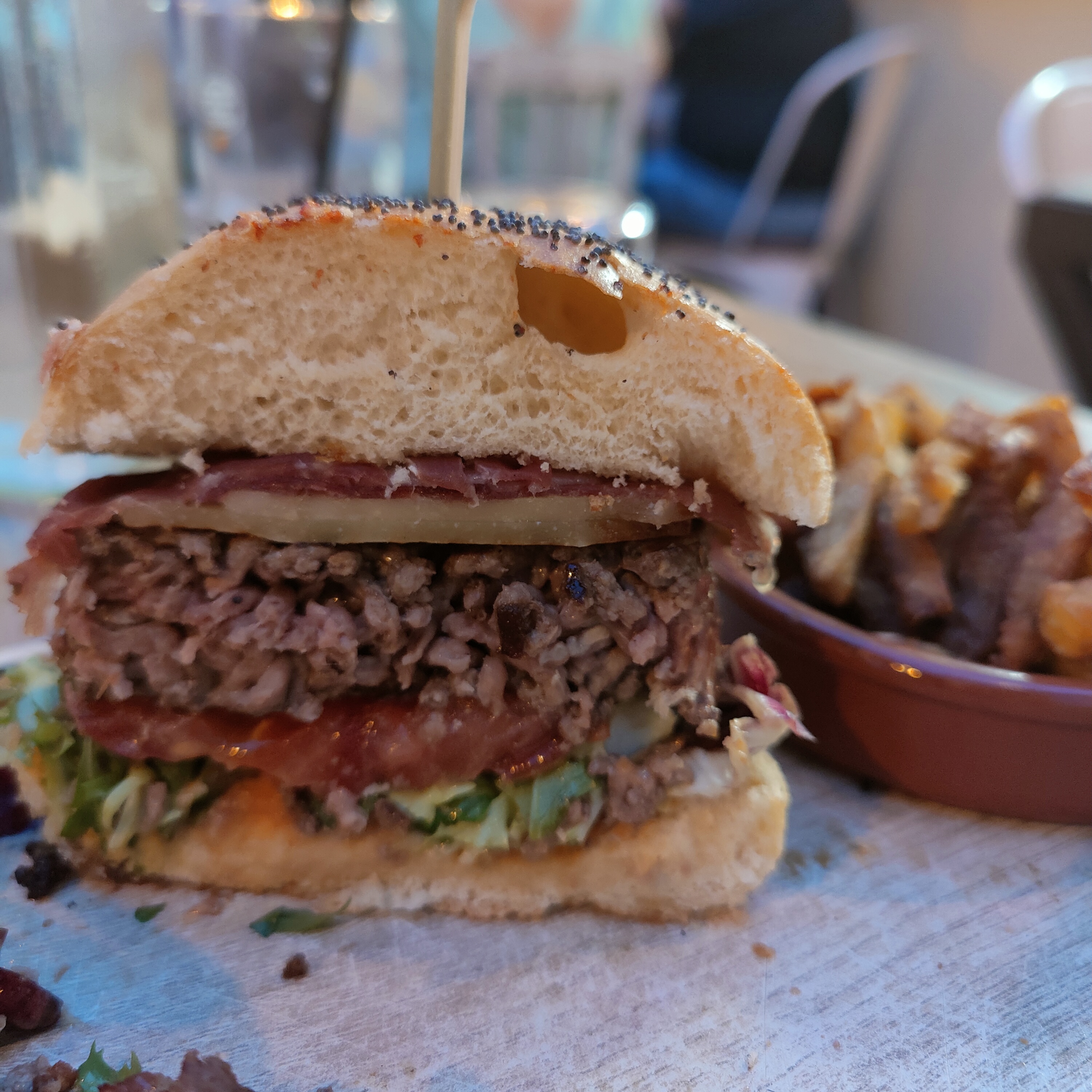 Un super accueil le personnel très sympathique nous avons mangé a 5 et tous le monde a adoré de très bon burger avec une très bonne viande des frites maison au top et pour un prix très raisonnable encore merci et je conseille a tous de réserver une table.