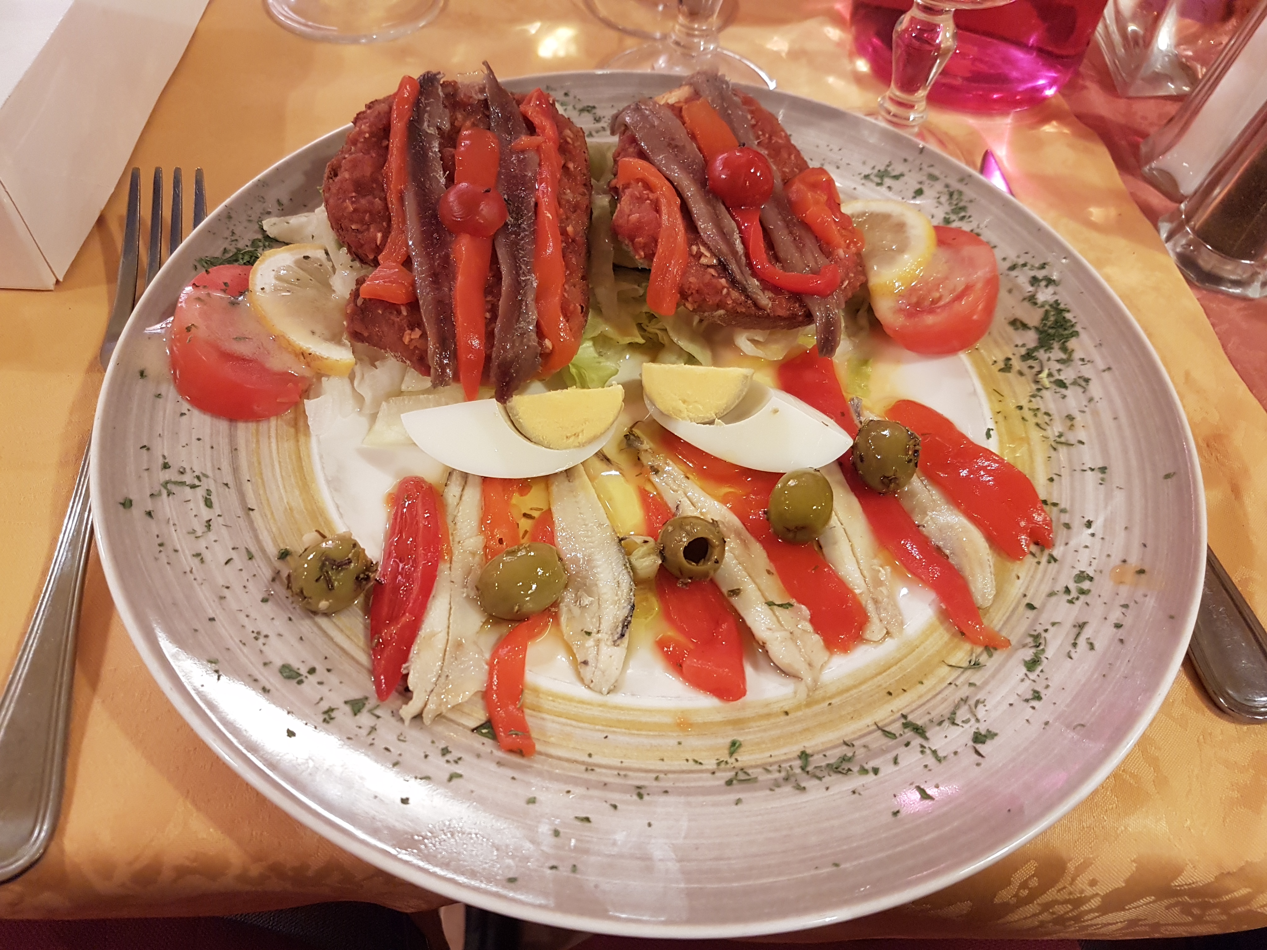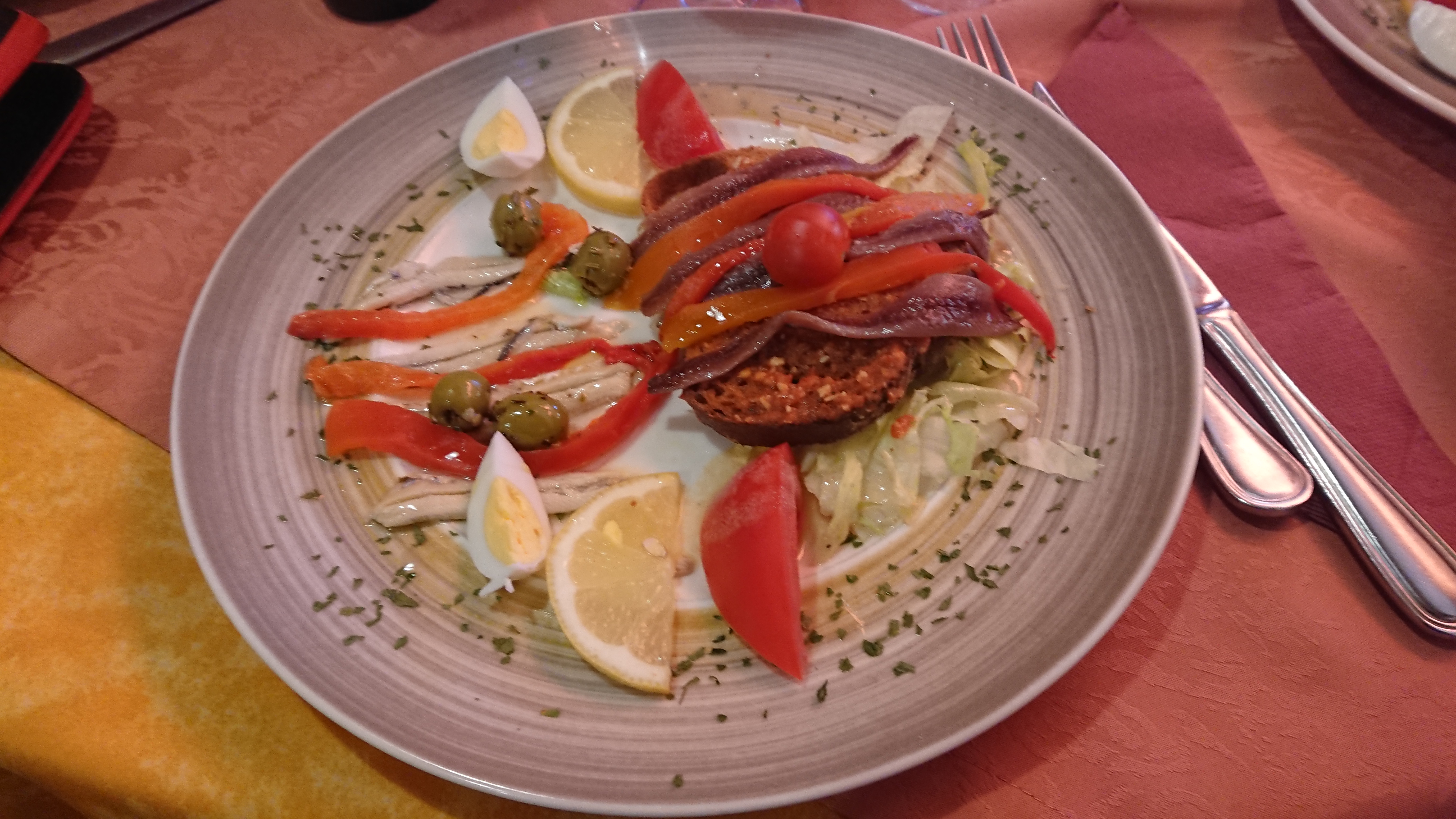 J'avais choisi le menu dans lequel en entrée assiette anchois et plat filet de poisson, J'ai trouvé 2 anchois dans l'assiette et un filet de de poisson minable en quantité ! J'appelle ça de l'escroquerie et du foutage de gueule à touriste pour le prix ! Ne vous atardez pas devant ce resto et fuyez chers amis !!!