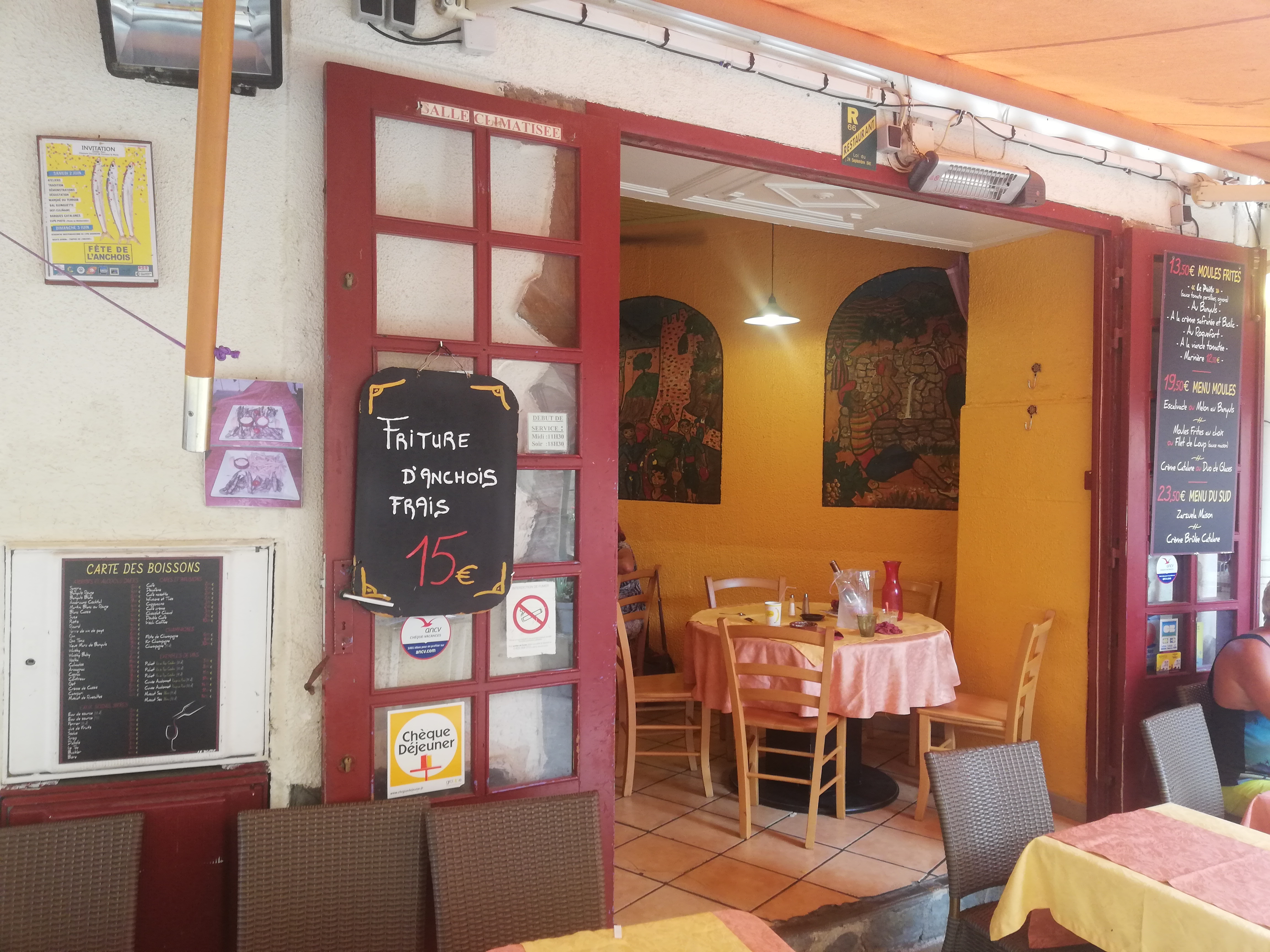 Petit restaurant de Collioure sympa, beaucoup de jeunes efficaces. Les plats sont copieux, très bon mais... Servis sur une assiette froide. A revoir!!. Les prix sont très corrects.