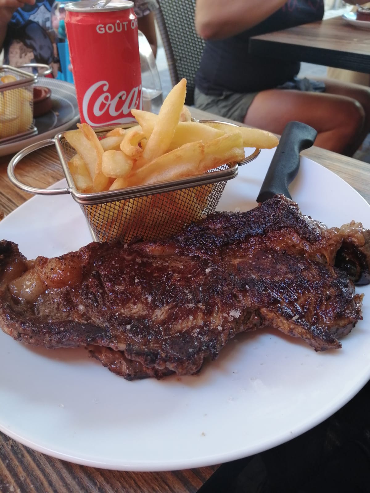 Un bon moment à 10 dans la fraîcheur de l'intérieur (très ouvert qd même). Excellentes gambas et calamars. L'entrecôte est délicieuse, mais une énorme (convient pour deux ou trois selon les appétits). Service sympa. Un peu d'attente, mais n'est pas lié à la qualité ?