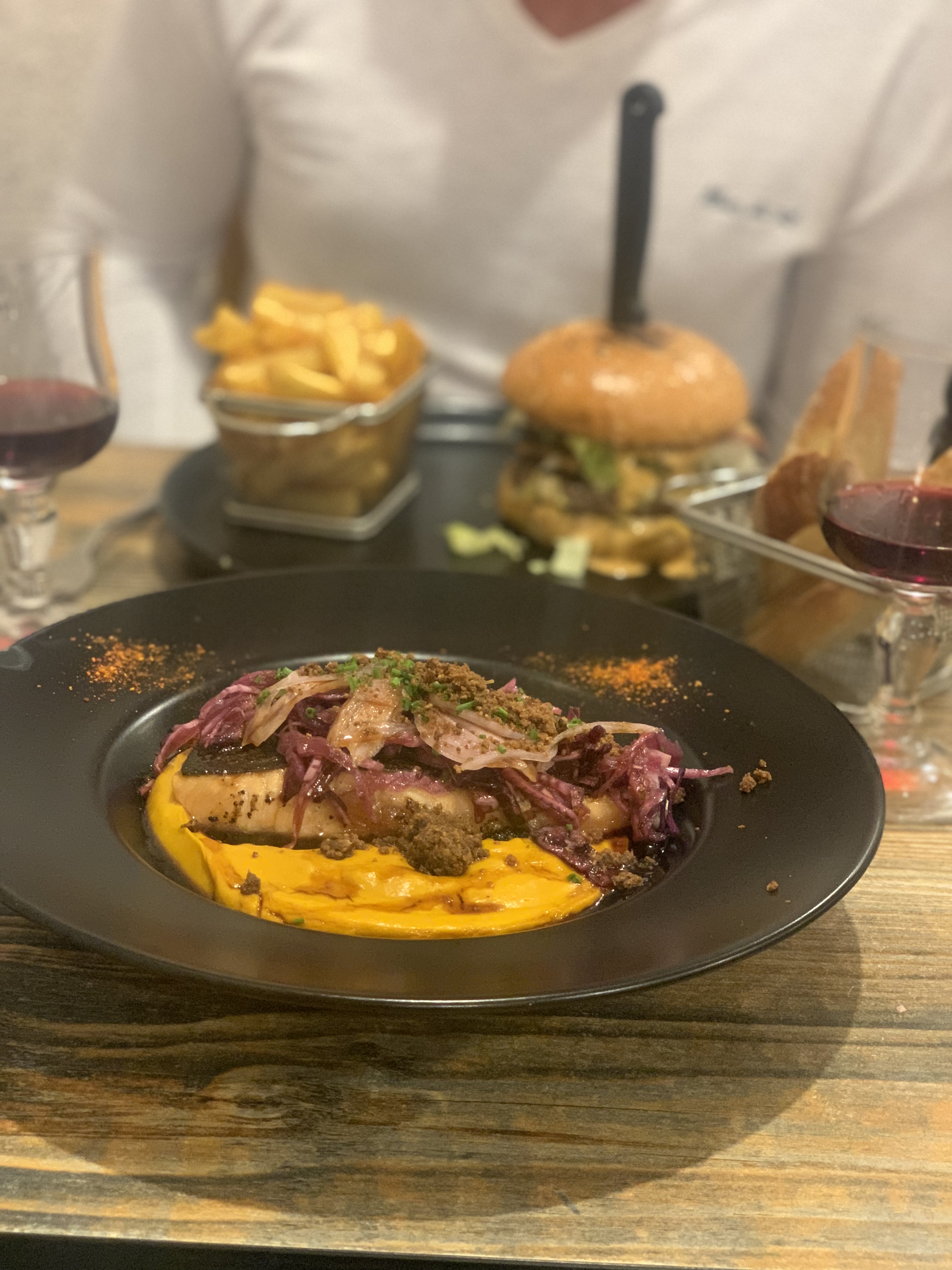 Le burger était très bon, le loup excellent et pour 5 personnes 140 euros ça valait vraiment le prix. Mention spéciale à la morue au chorizo juste sublime. Bravo!!!