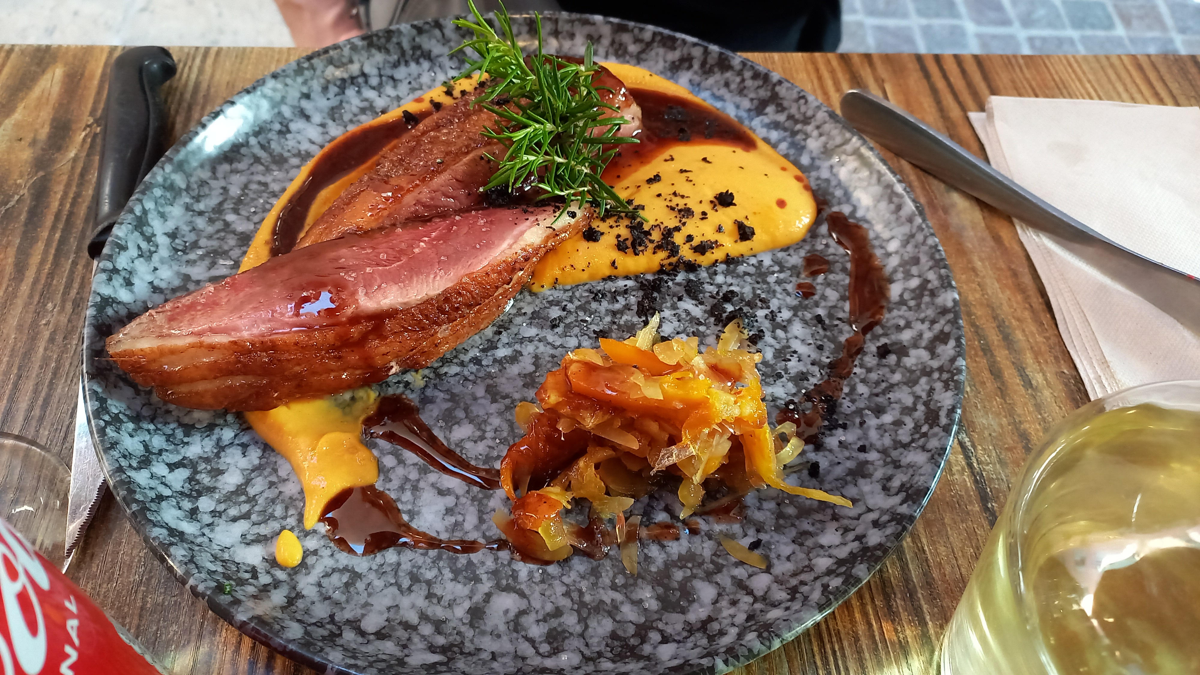 Restaurant très agréable en terrasse! Prix standards hauts sur les plats, cuissons des magrets respectées ! Endroit stratégique pour les visites! Seul hic le prix très élevé des desserts ! Pour rester sur une note positives, les saveurs étaient là!