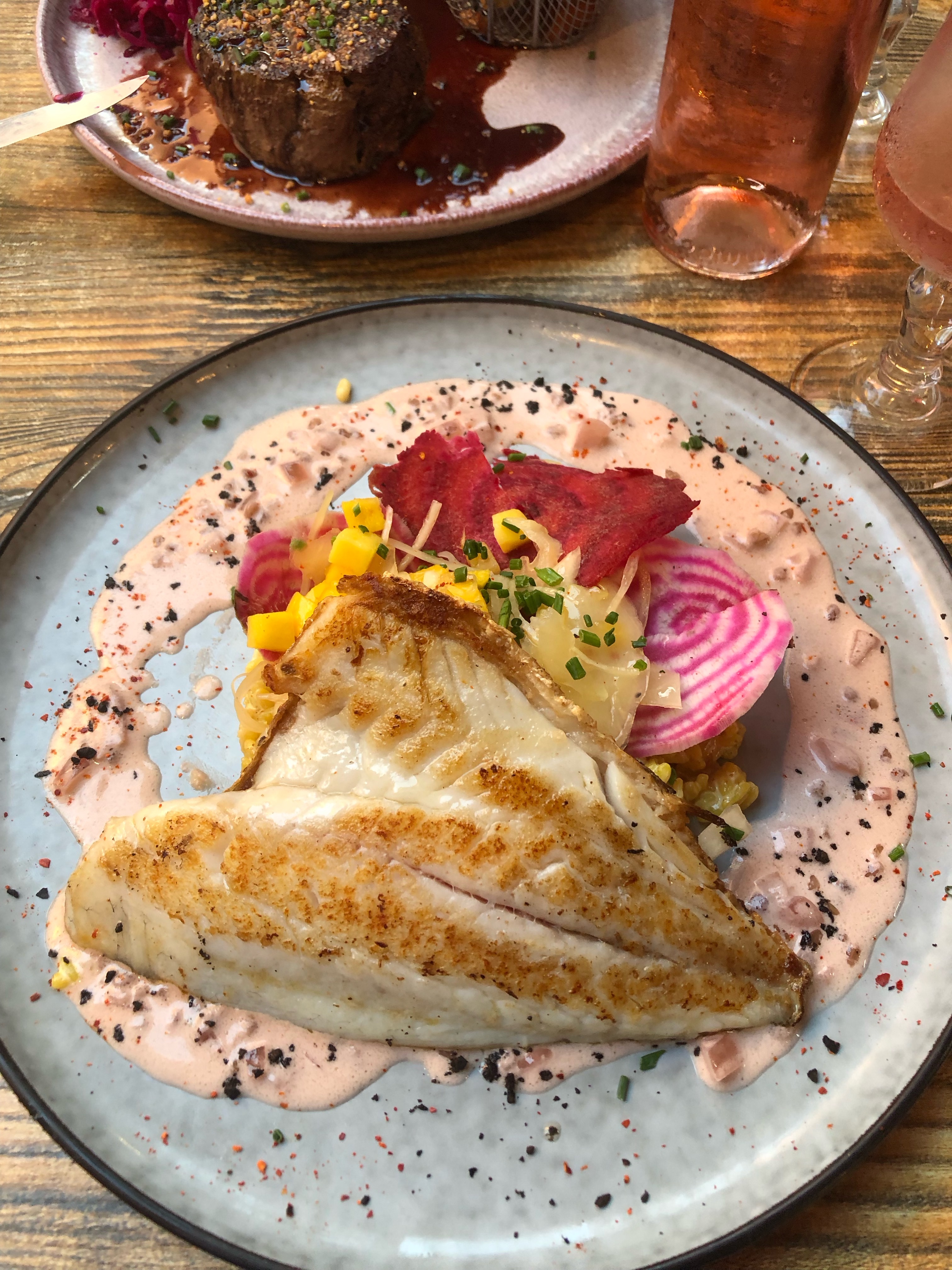 Nous sommes tombés sur ce restaurant proche de la plage de Collioure, dans des petites ruelles colorées. L'accueil et le service sont très sympas. Nous avons pris le menu de base à 19€ et nous nous sommes régalés. Le filet de loup avec sa purée panais/chocolat blanc était un délice ! Le dessert également. Je recommande vivement ce restaurant qui a changé d'équipe en février !