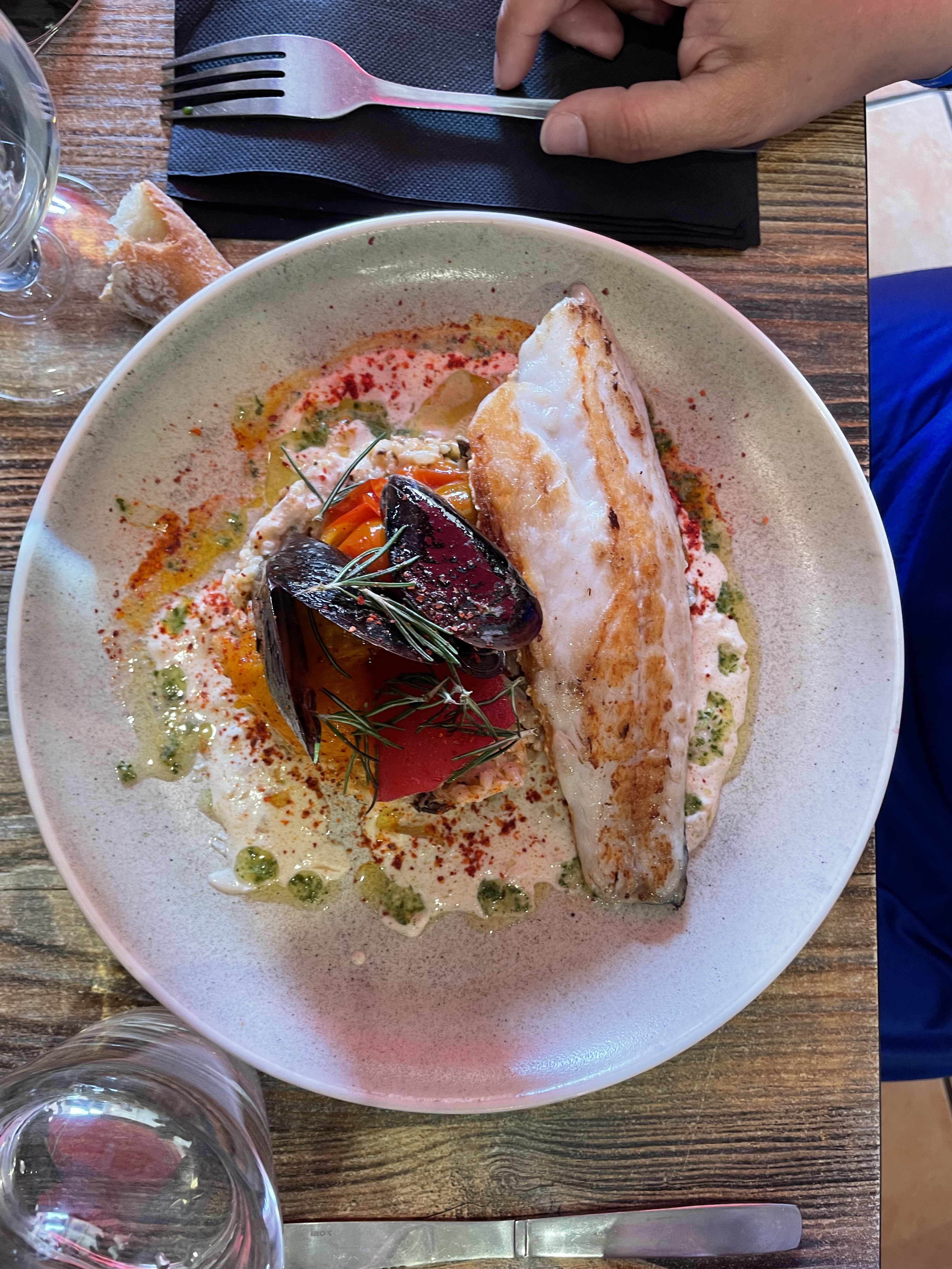 Bonjour, je suis allée a ce restaurant en vacances, fin aout, avec des amis. Cela a été une très agréable surprise car nous avons très bien mangé. J'avais pris le risotto aux moules et calamars grillé, et c'était excellent. l'équipe est disponible et souriante La carte et les plats sont variés. Les prix peuvent paraitre un brin excessif mais la qualité des plats vaut leur prix. La cuisson des différents plats est respectée. Du coup, moi et mon amie y sont revenues 3 jours après avec un autre couple d'amis car nous avions aimé ce restaurant. Je recommande vivement car c'est une belle surprise...