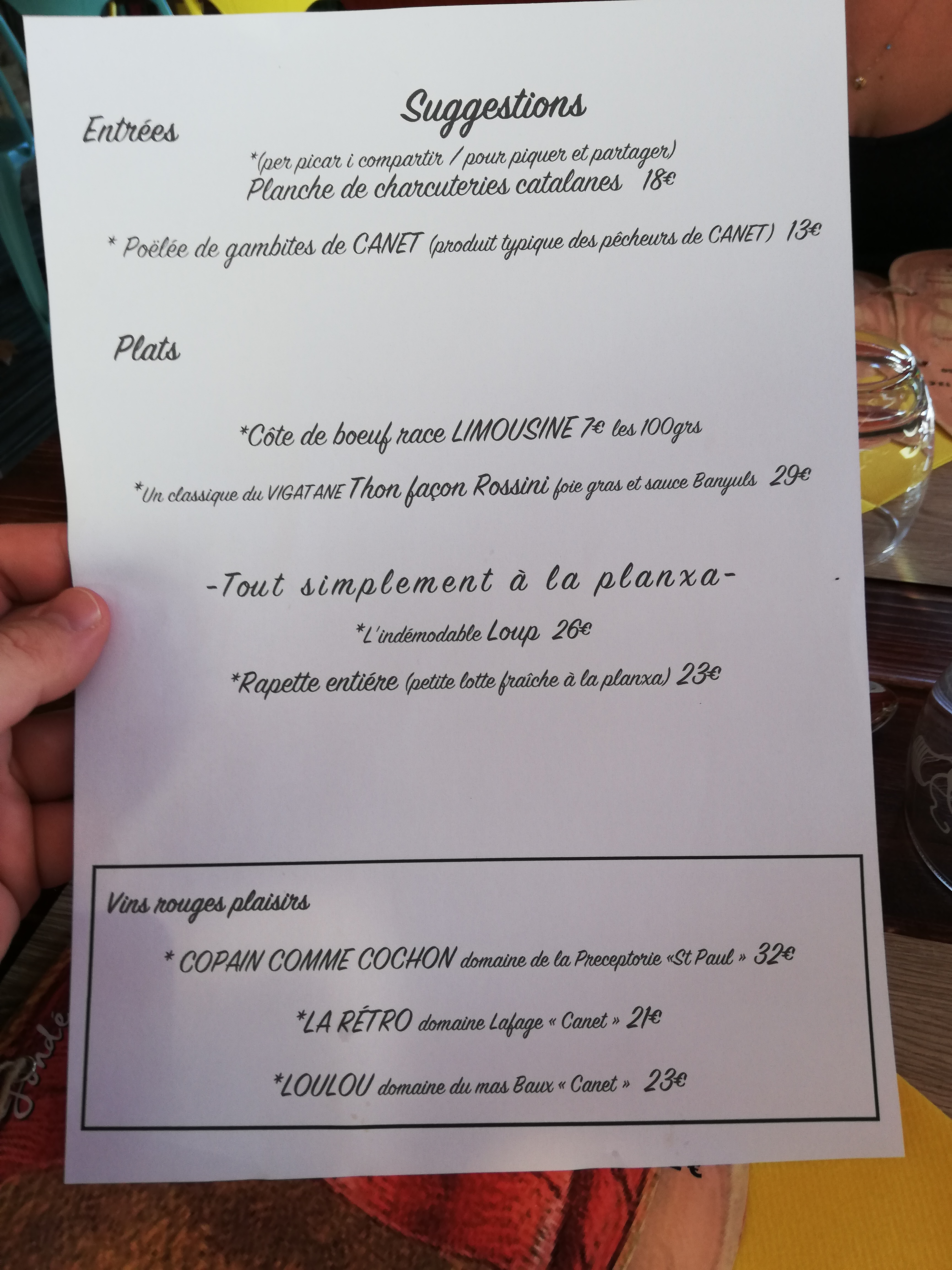 Toujours au top. Le service, la nourriture, le cadre, bref pur produit catalan ! Compter 40€/personne pour un repas à la carte entré plat dessert café.