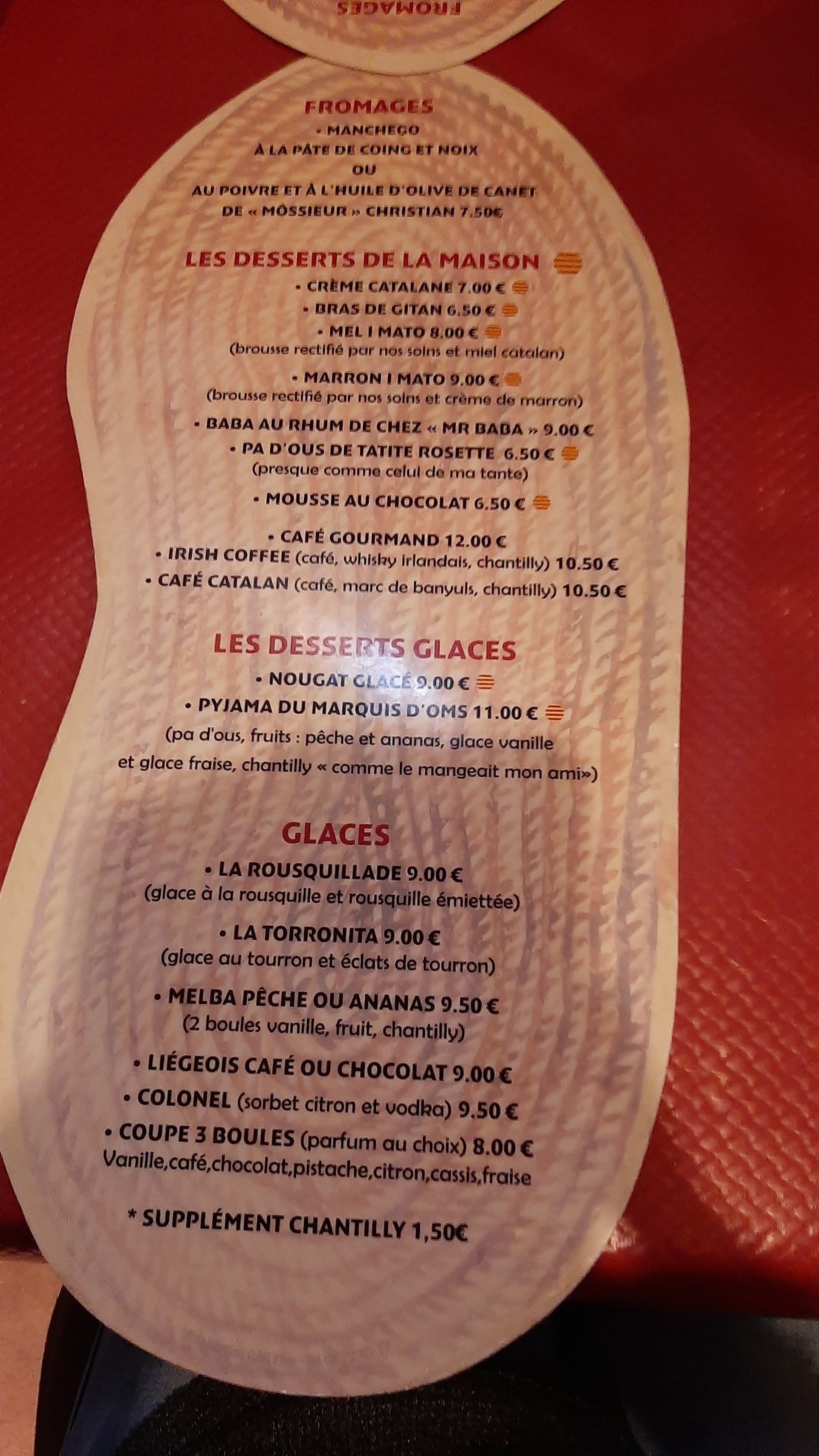 Super acceuil, super endroit vous voyager en pays catalan le temps d une soirée. Ont a pas envie de reparti tellement qu onnest bien. Qualité des aliments extra! Toute l équipe est au petit soin des clients!