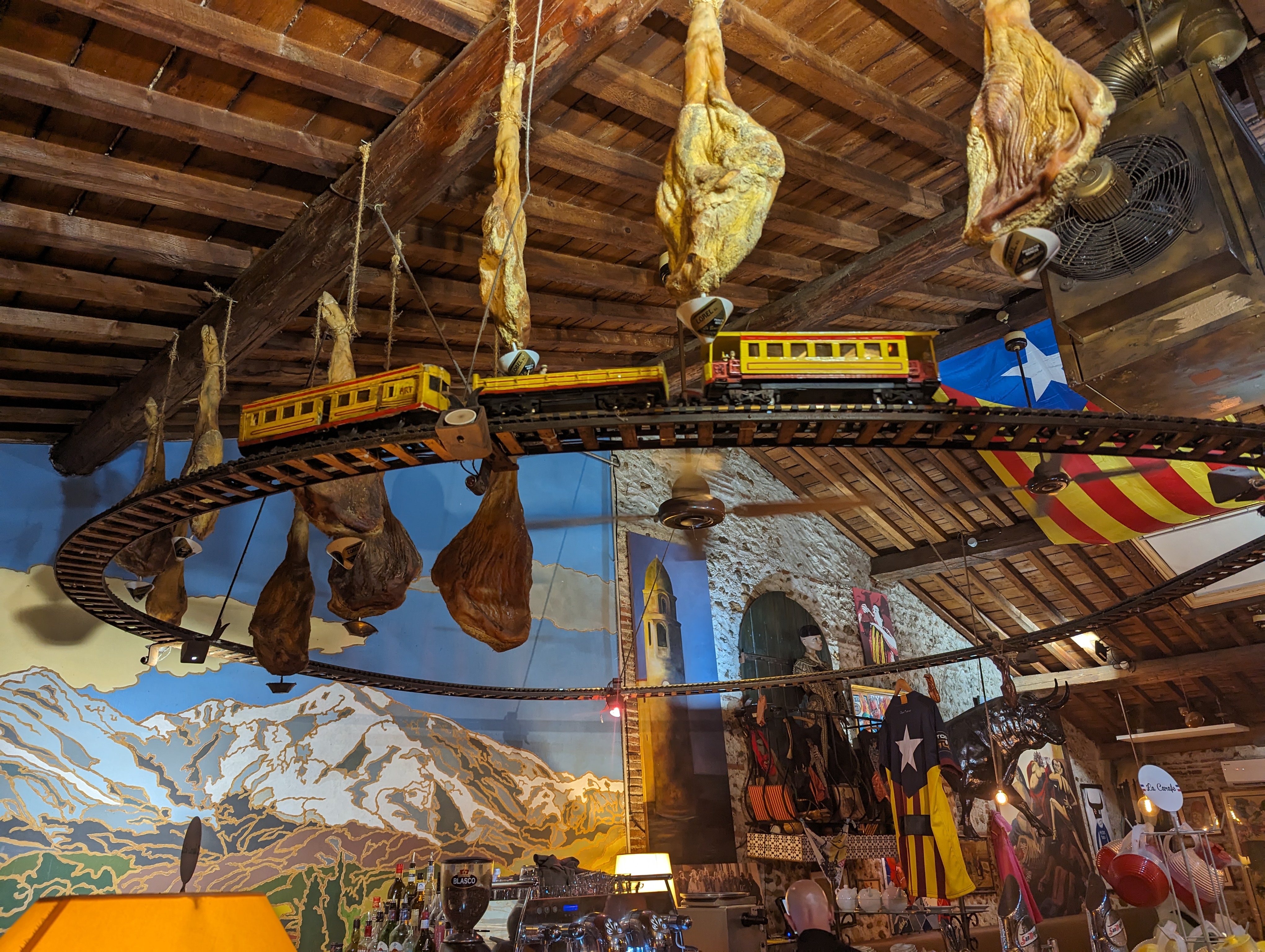 Décoration d'exception, y'a un train au plafond !! Cuisine typique, un serveur attentionné, qui'a expliqué les techniques catalanes a un breton ... Sérieusement rien a redire, allez y les yeux fermés. Je reviendrai...