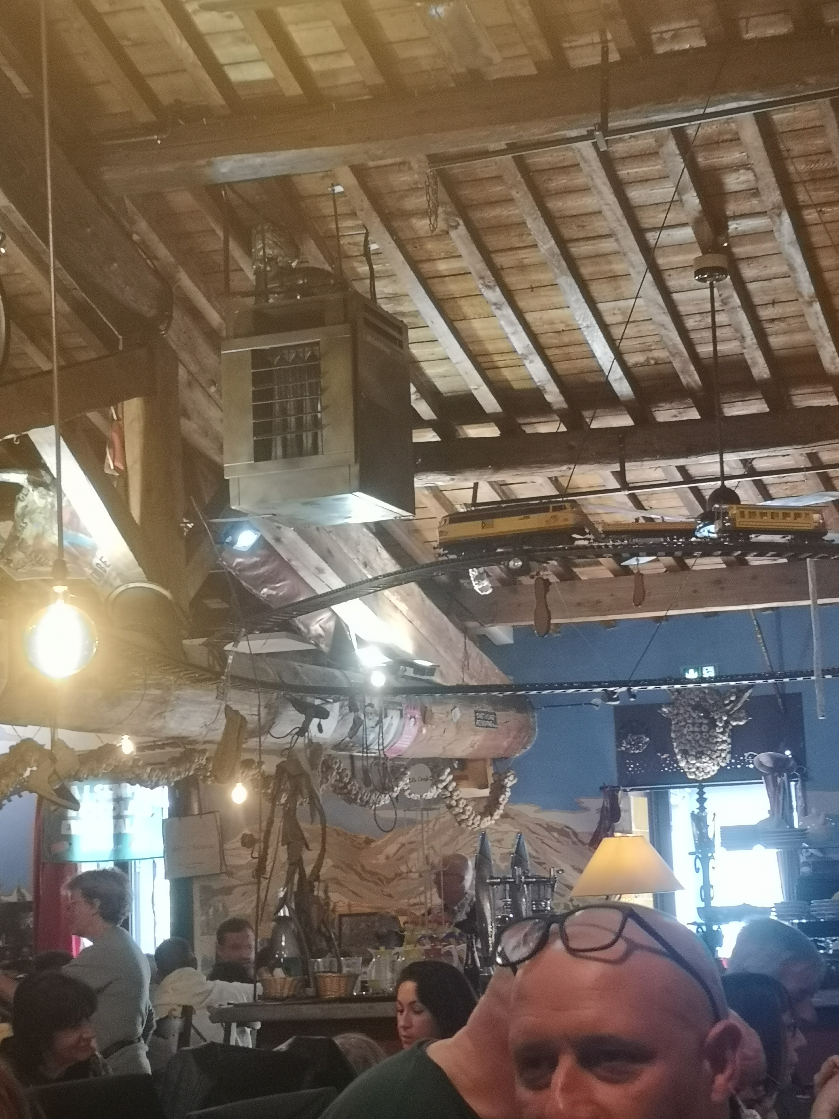 Génial ! Les plats sont excellents escargots charcuterie boulettes et j en passe ! La déco juste magnifique ! On se croirait retomber en enfance ! et le petit train jaune qui tourne autour de la salle! le personnel et le patron sont très sympa et très pros vraiment top j y retournerai avec un très grand plaisir