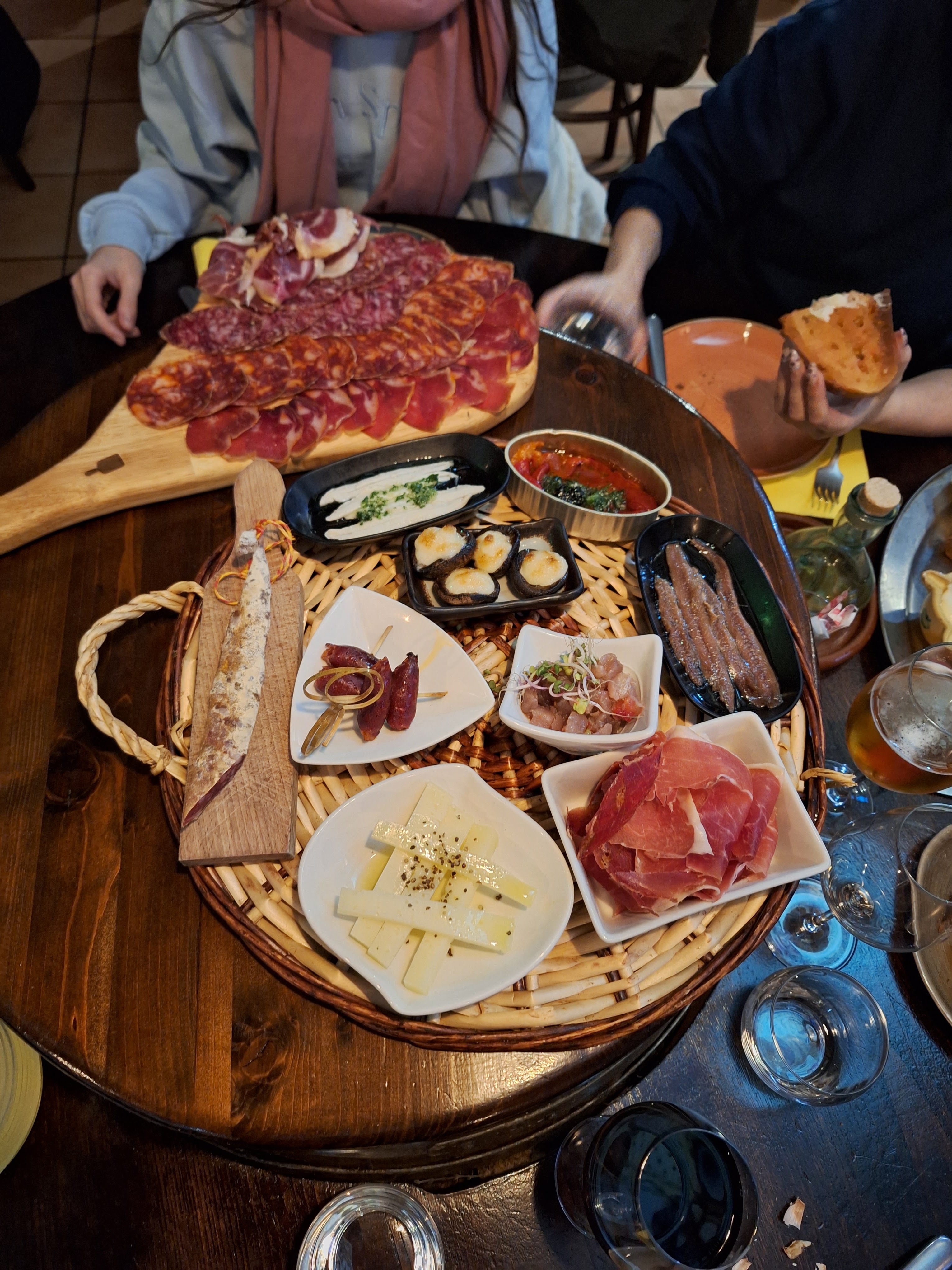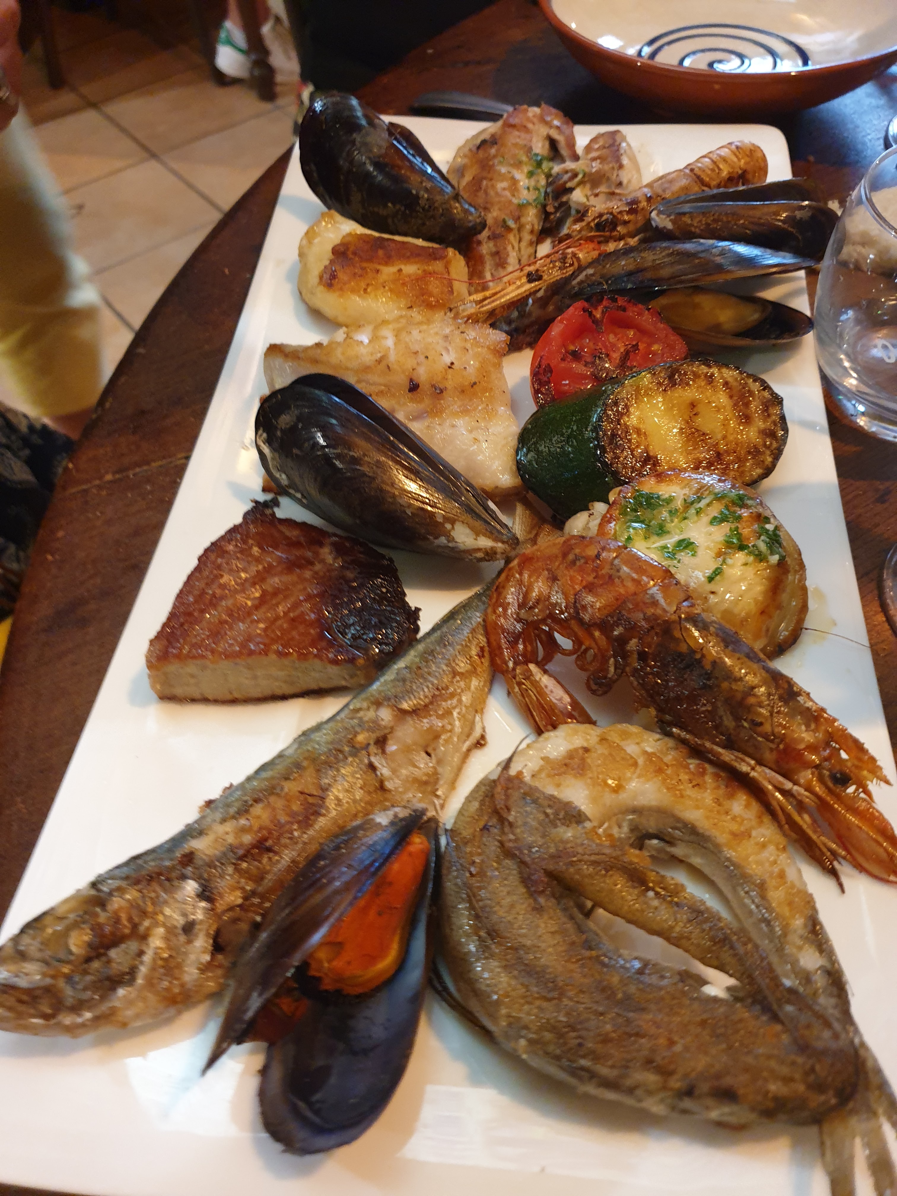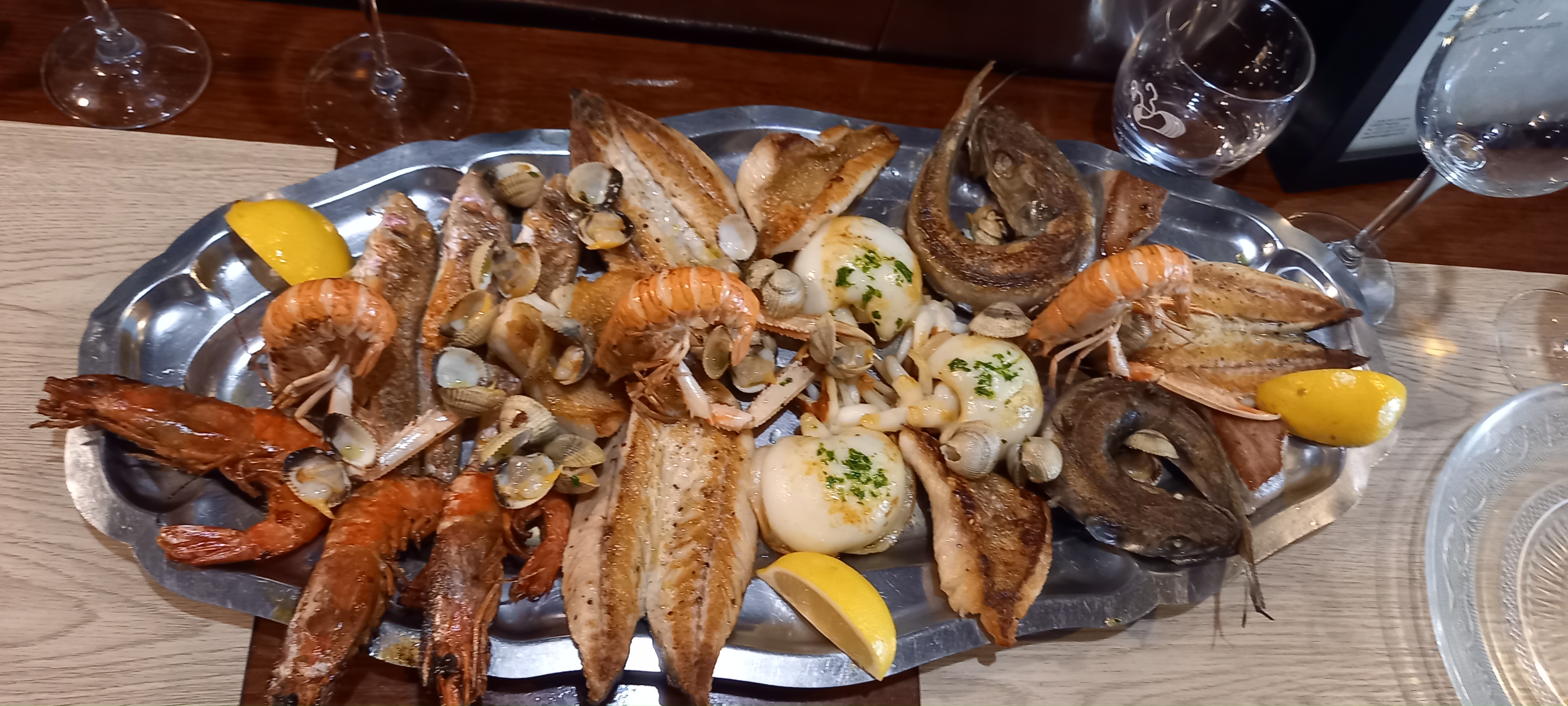 Tapas excellentes et très quali, nous avons ensuite pris la parillade de cochon et celle de poisson, hyper copieuses ! Déco incroyable on est direct dans l'ambiance catalane, pas un seul endroit échappe à une touche déco ! Seul petit bémol, les plats arrivés n'étaient mas très chauds.