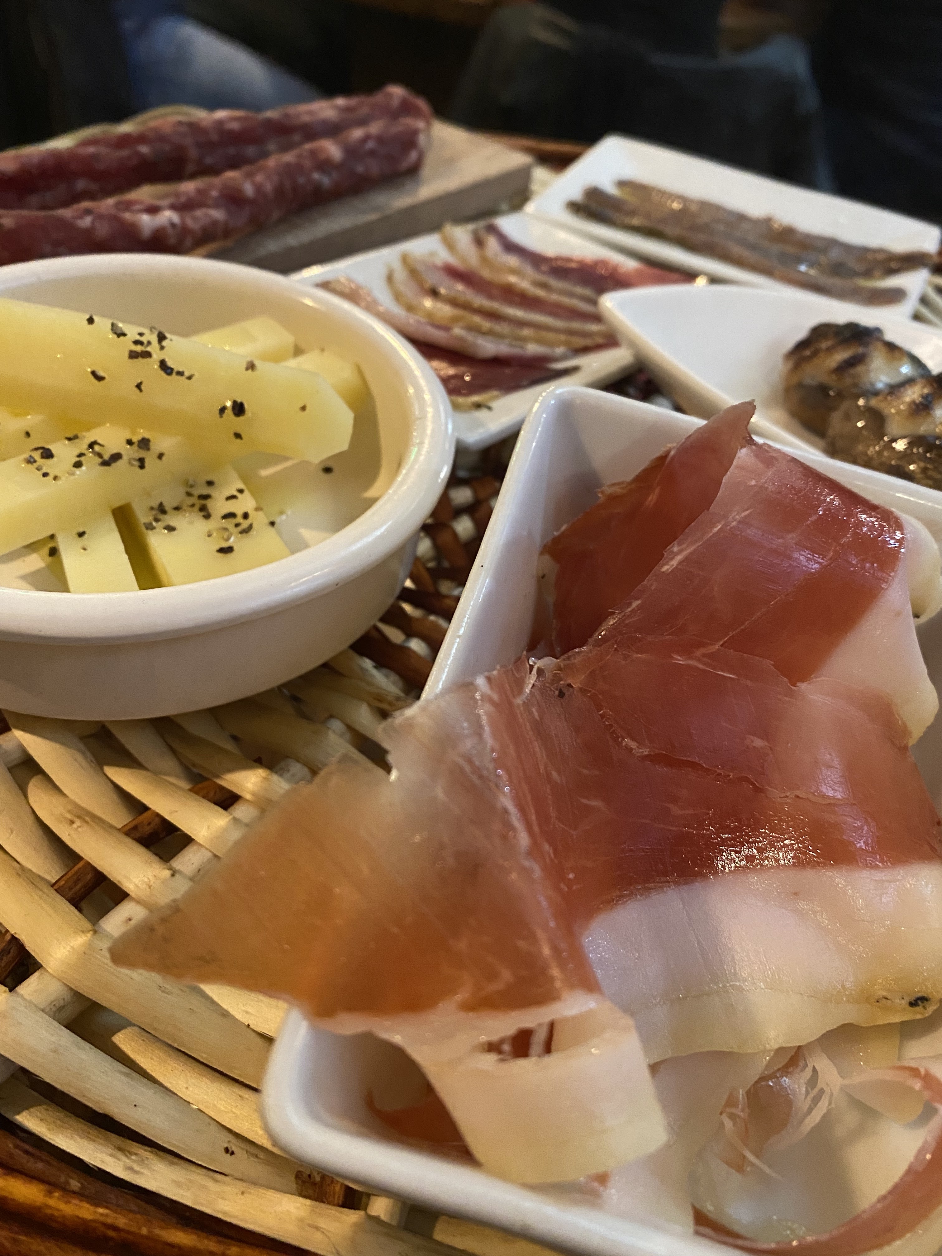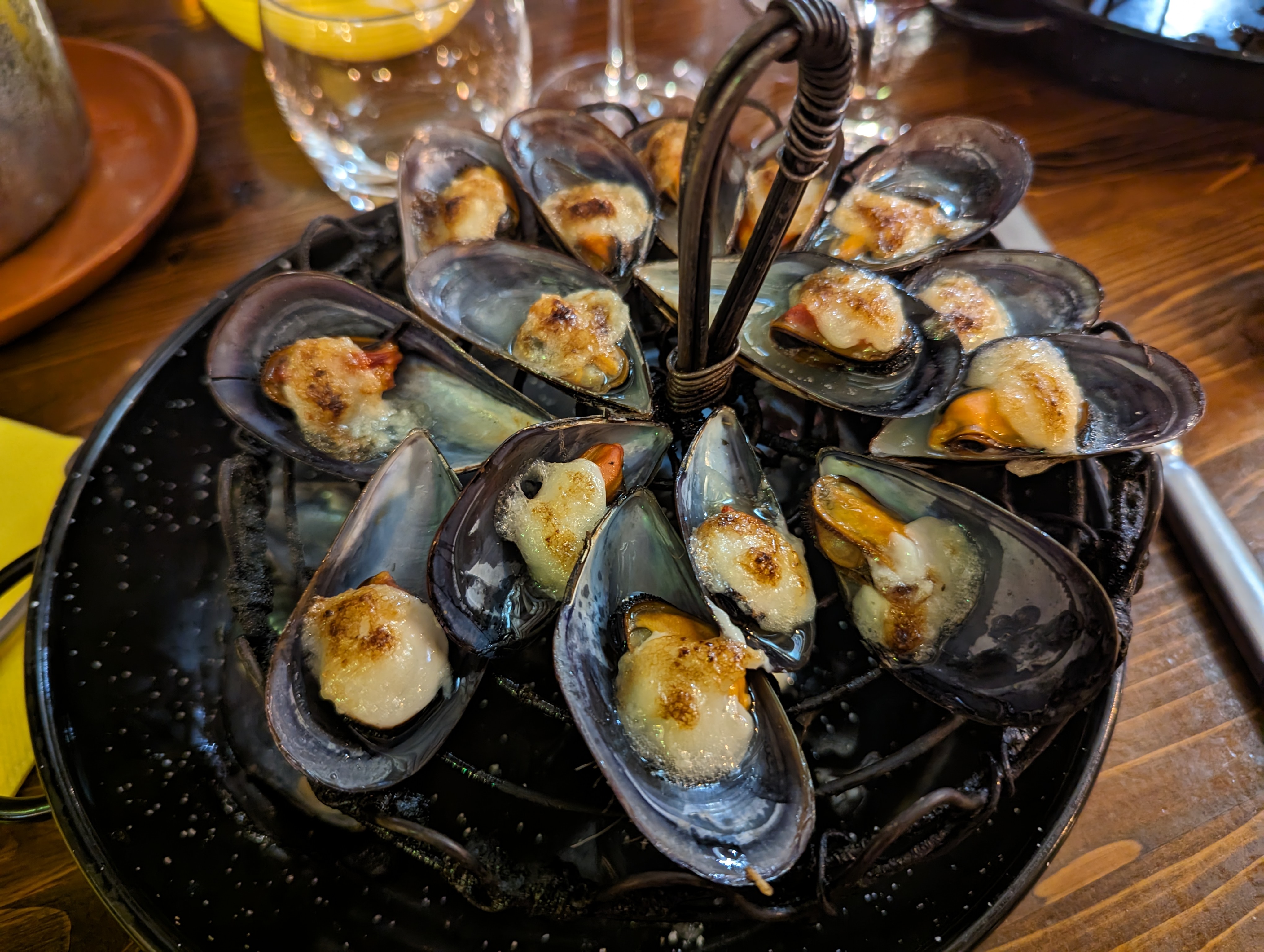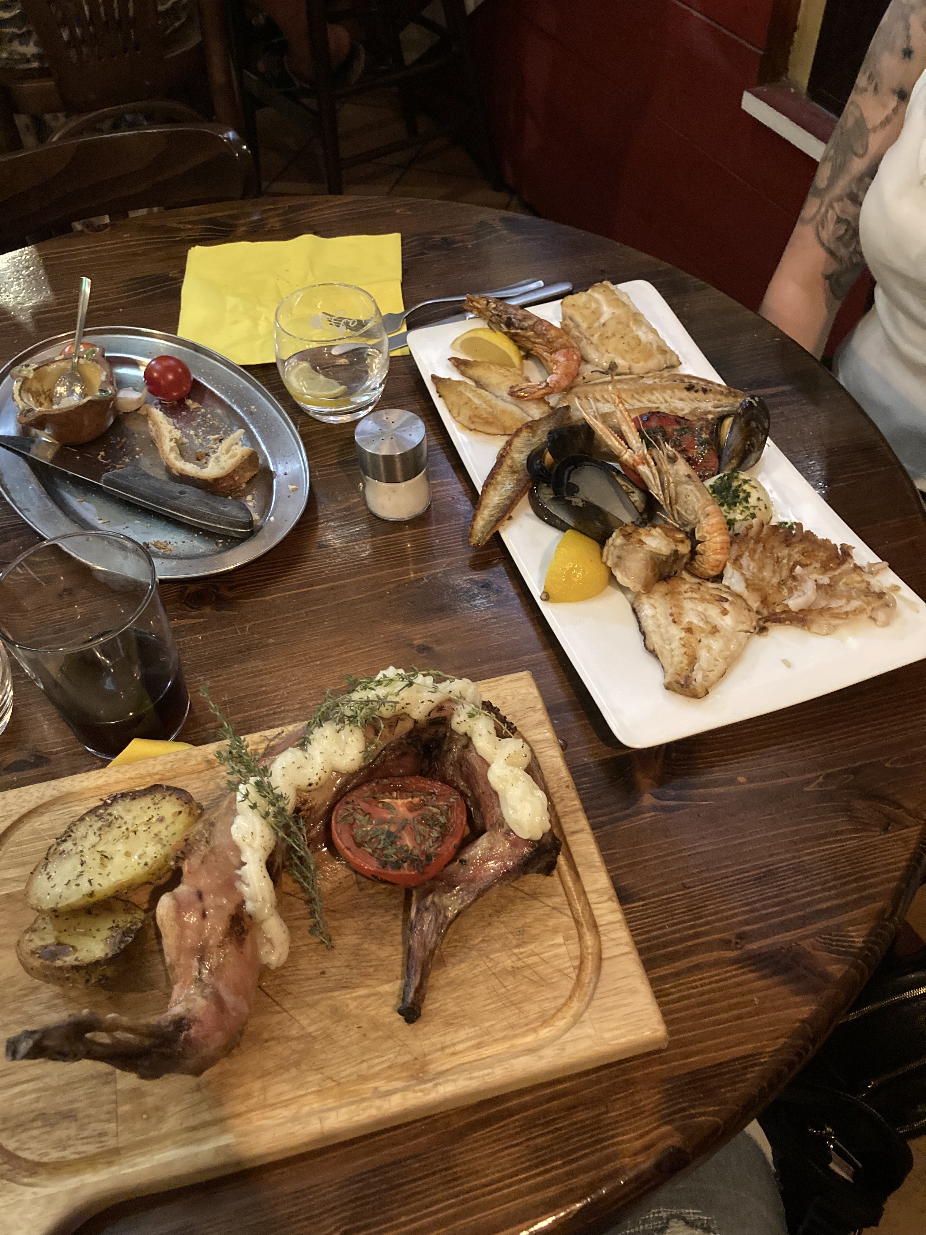 Tapas excellentes et très quali, nous avons ensuite pris la parillade de cochon et celle de poisson, hyper copieuses ! Déco incroyable on est direct dans l'ambiance catalane, pas un seul endroit échappe à une touche déco ! Seul petit bémol, les plats arrivés n'étaient mas très chauds.