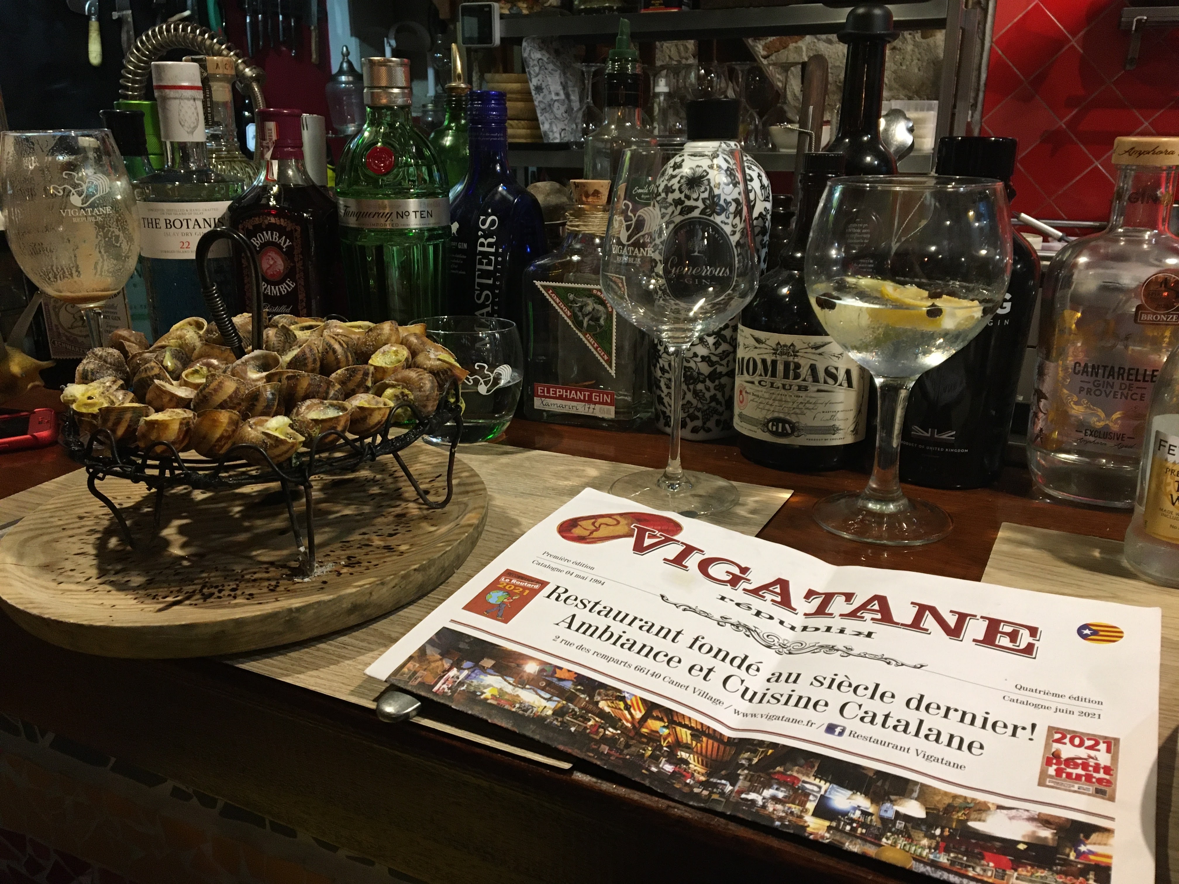 Cuisine catalane : crevettes rouge de Méditerranée, escargots à la braise, loup à la planxa, porc Tirabuixo… les plats du terroir sont racontés par le patron Yves au comptoir du VIGATANE. Et le bar à gin avec le talent du barman qui fait de vos gins un spectacle sont une découverte de saveurs exceptionnelles bien trop rares.