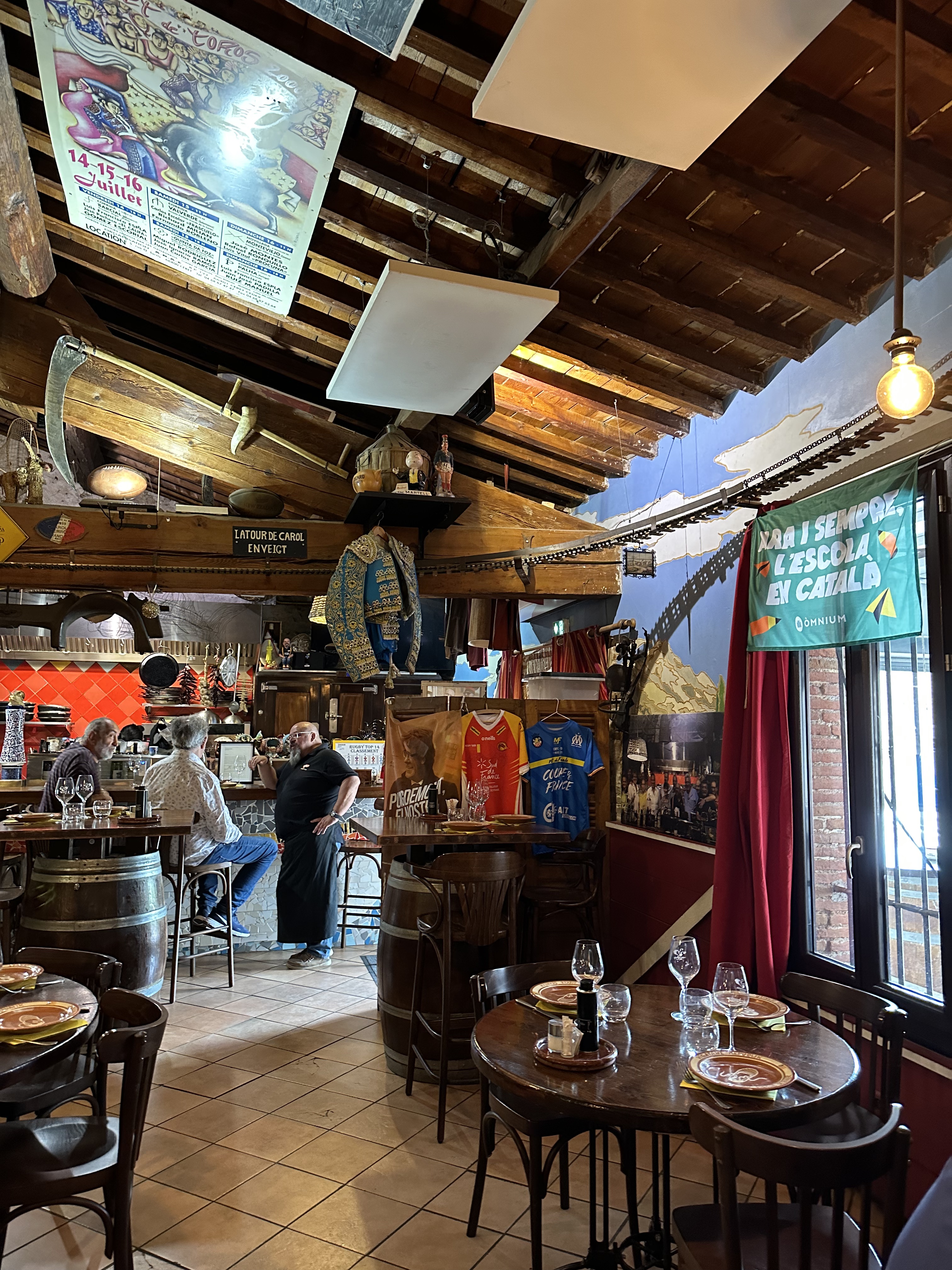 Très belle endroit plein d'authenticité à la déco chargé, parfois sa peu rendre un aspect bazard et fouillis, mais on ce rend vite compte que tout as un sens et que la cuisine servi est exactement ce que l'on s'attend à trouver une cuisine rustique catalane plein de saveur et très généreuse. Je vous le recommande et j'y retournerais !!!